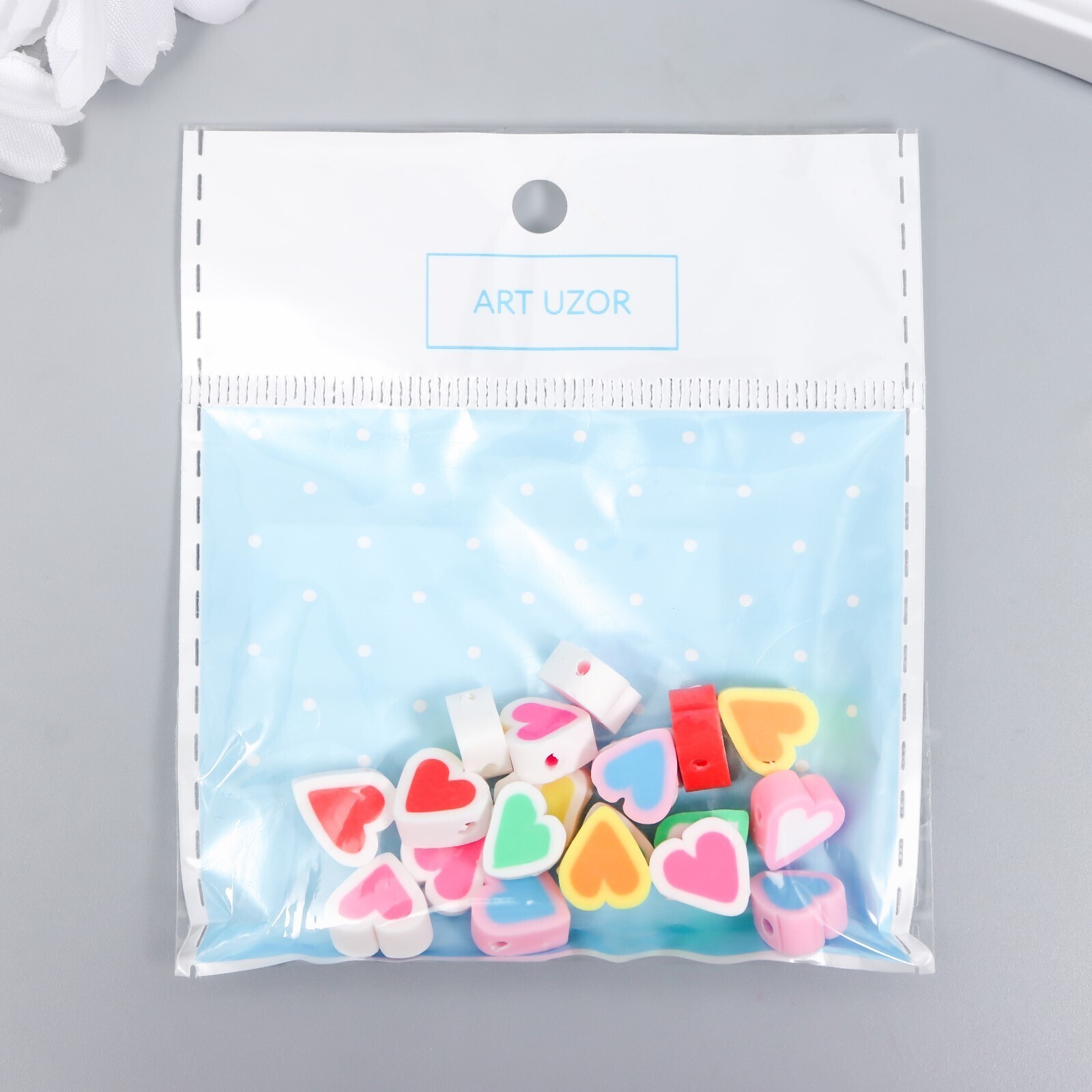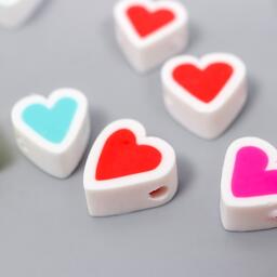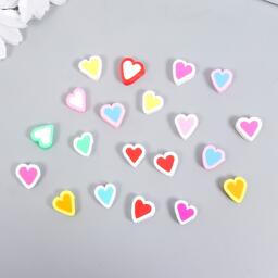 Бусины для творчества PVC "Сердечки с контуром" цветные набор 20 шт 1х1х1 см
