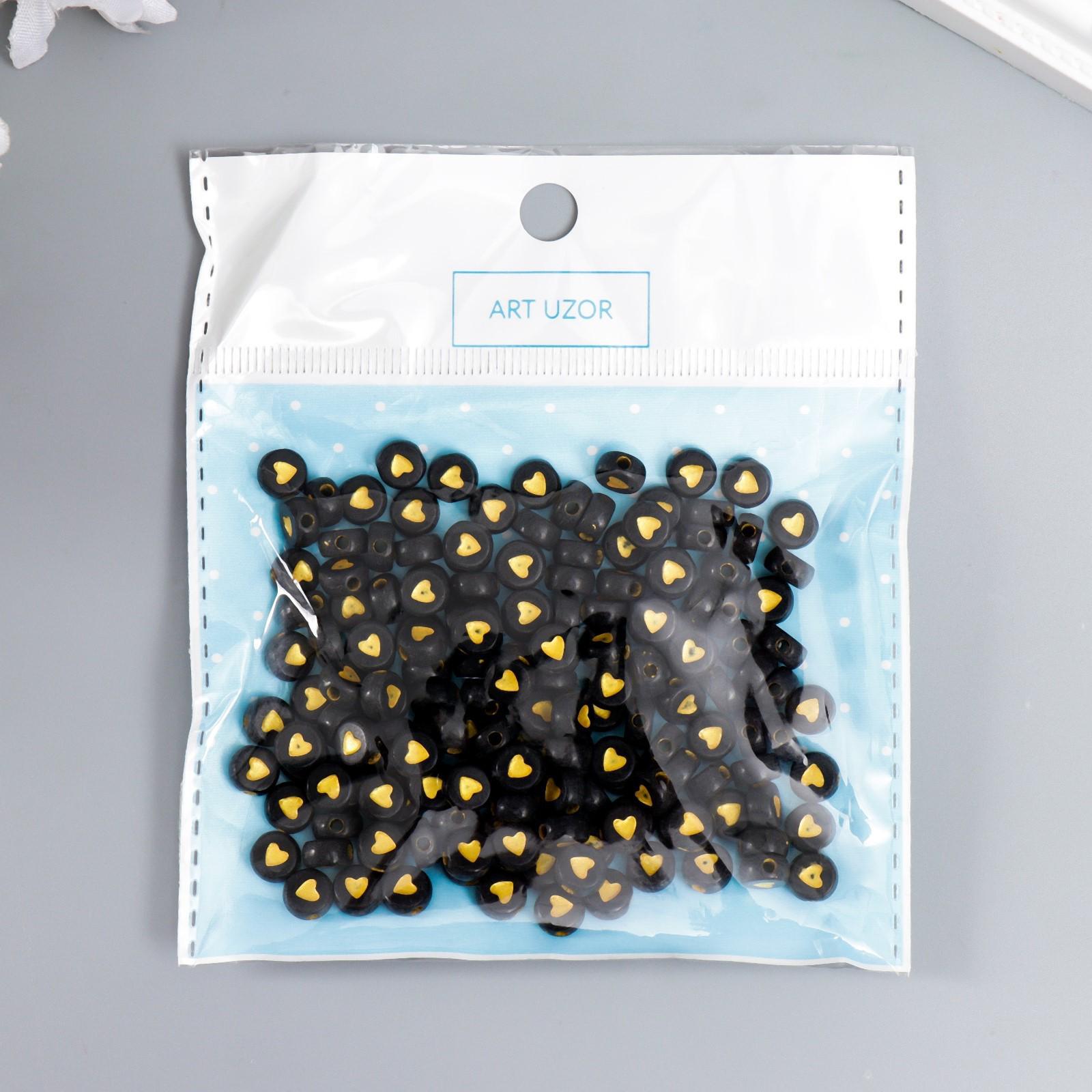 Набор бусин для творчества пластик "Золотое сердце на круге" 20 гр 0,7х0,7х0,4 см