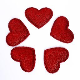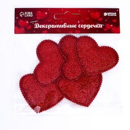 Сердечки декоративные, набор 5 шт., размер 1 шт: 5,3 × 5 см, цвет красный
