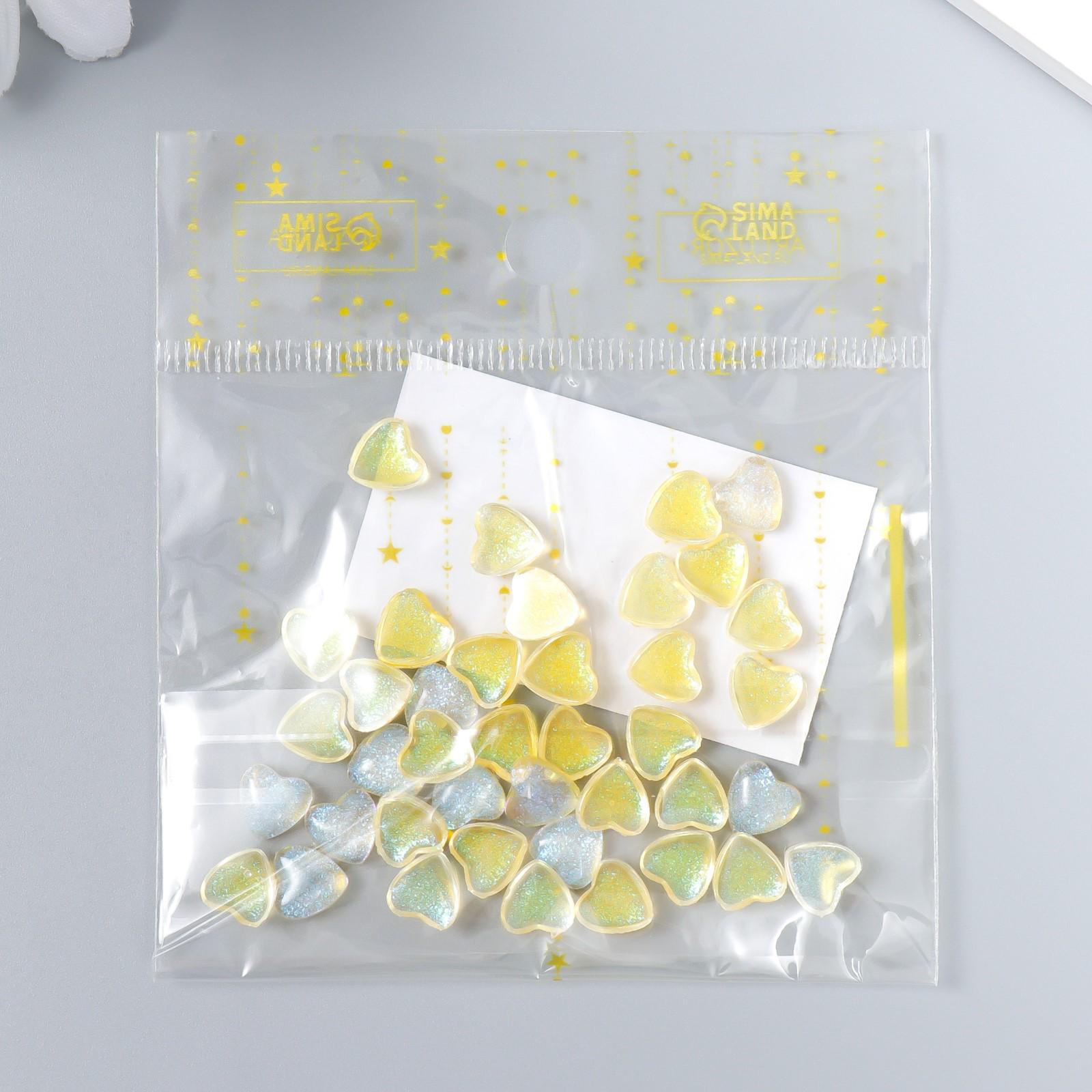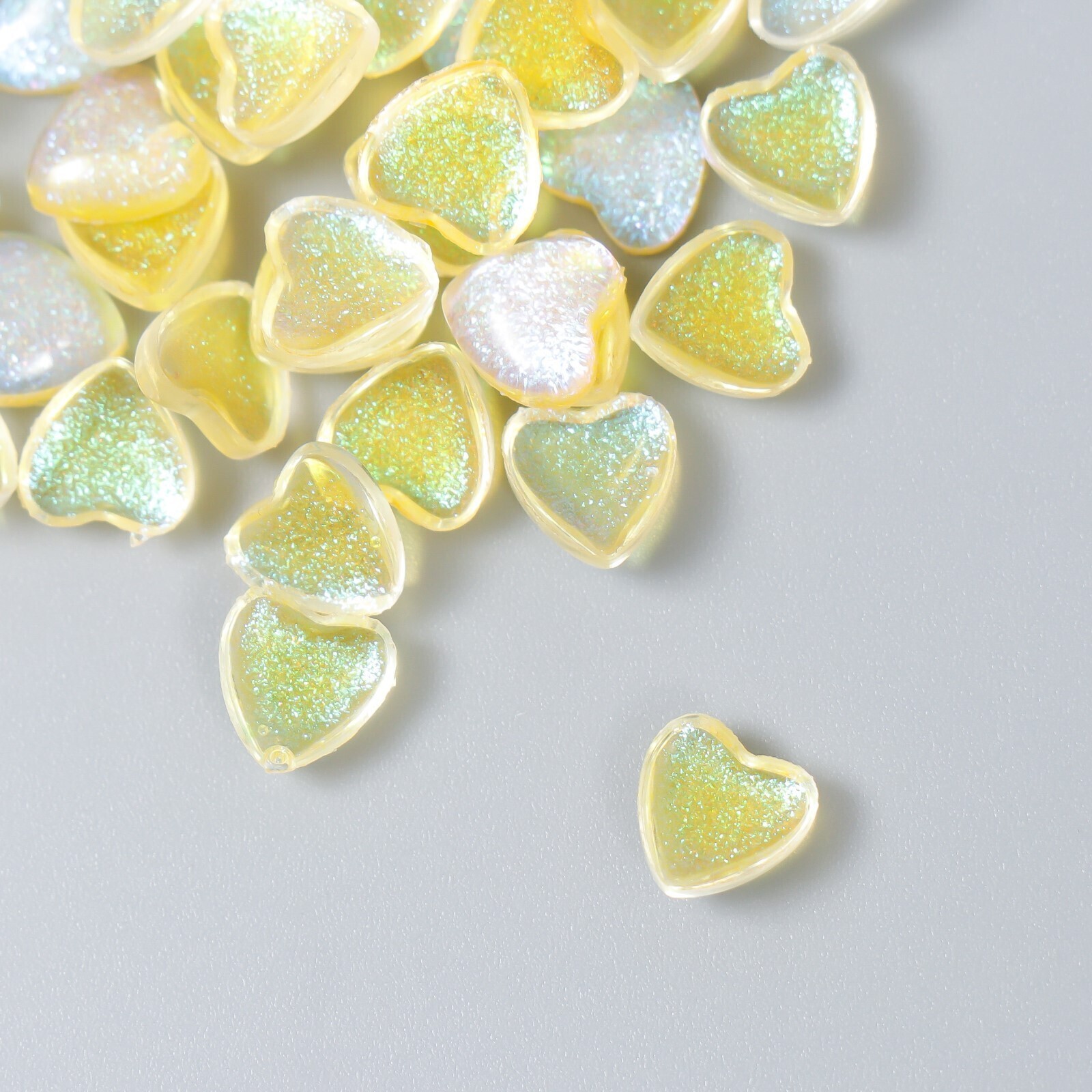 Декор для творчества пластик "Сердечки с блеском" набор 40 шт полупрозр.жёлтый 0,8х0,8 см