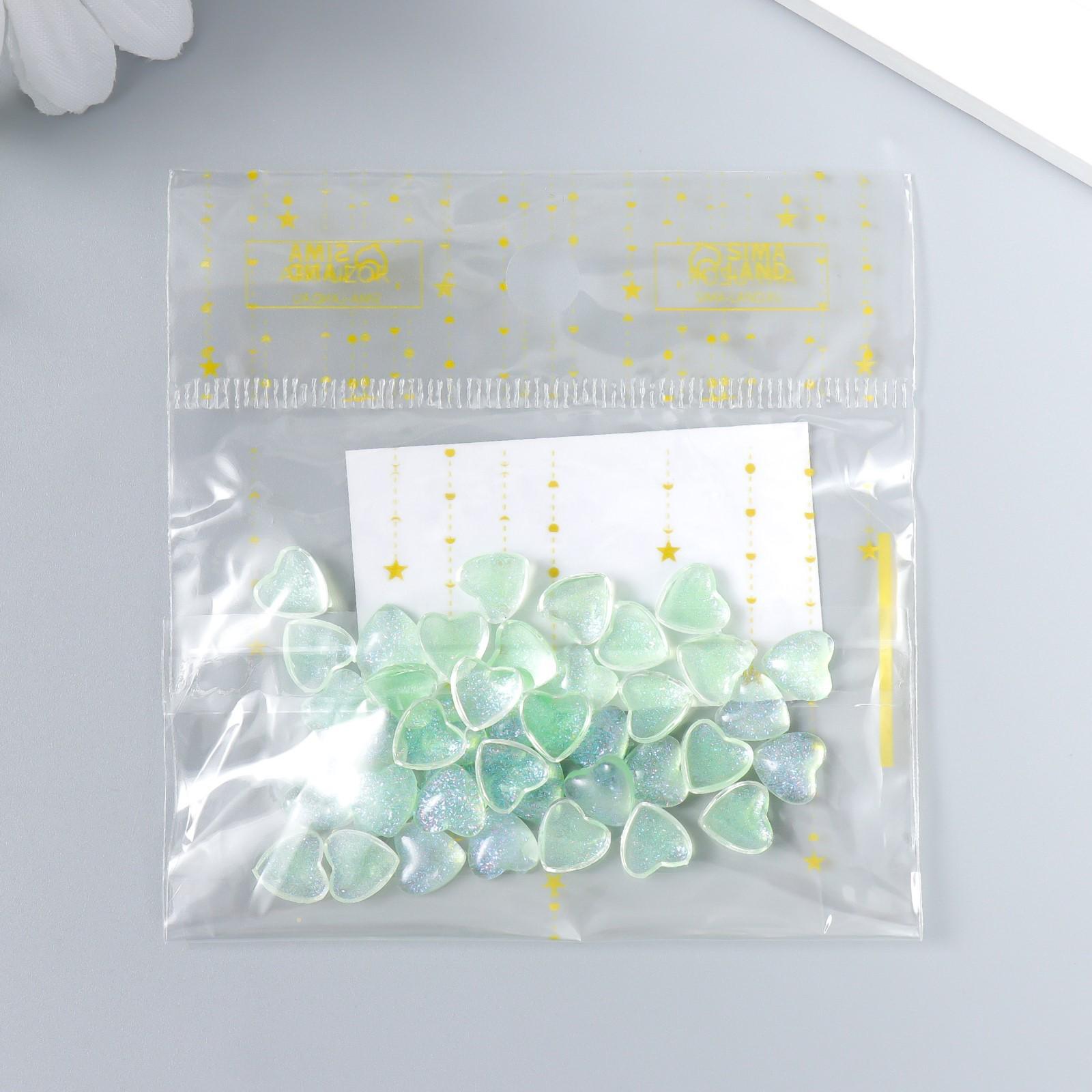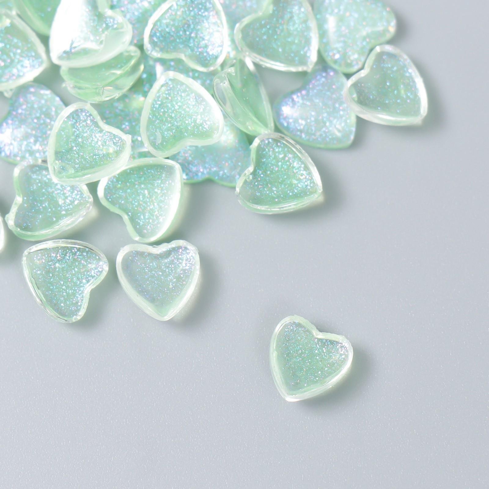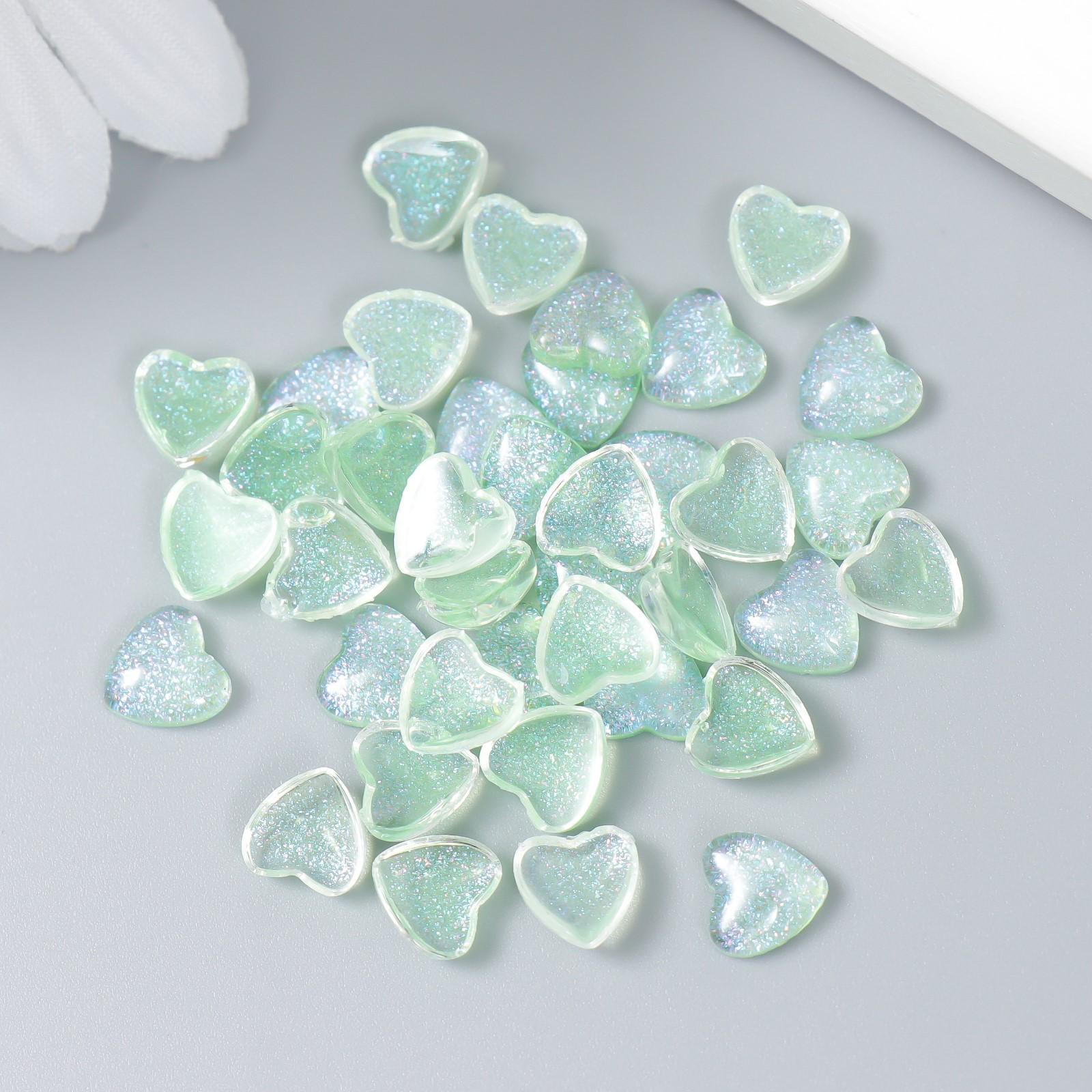Декор для творчества пластик "Сердечки с блеском" набор 40 шт полупрозр.зелён 0,8х0,8 см