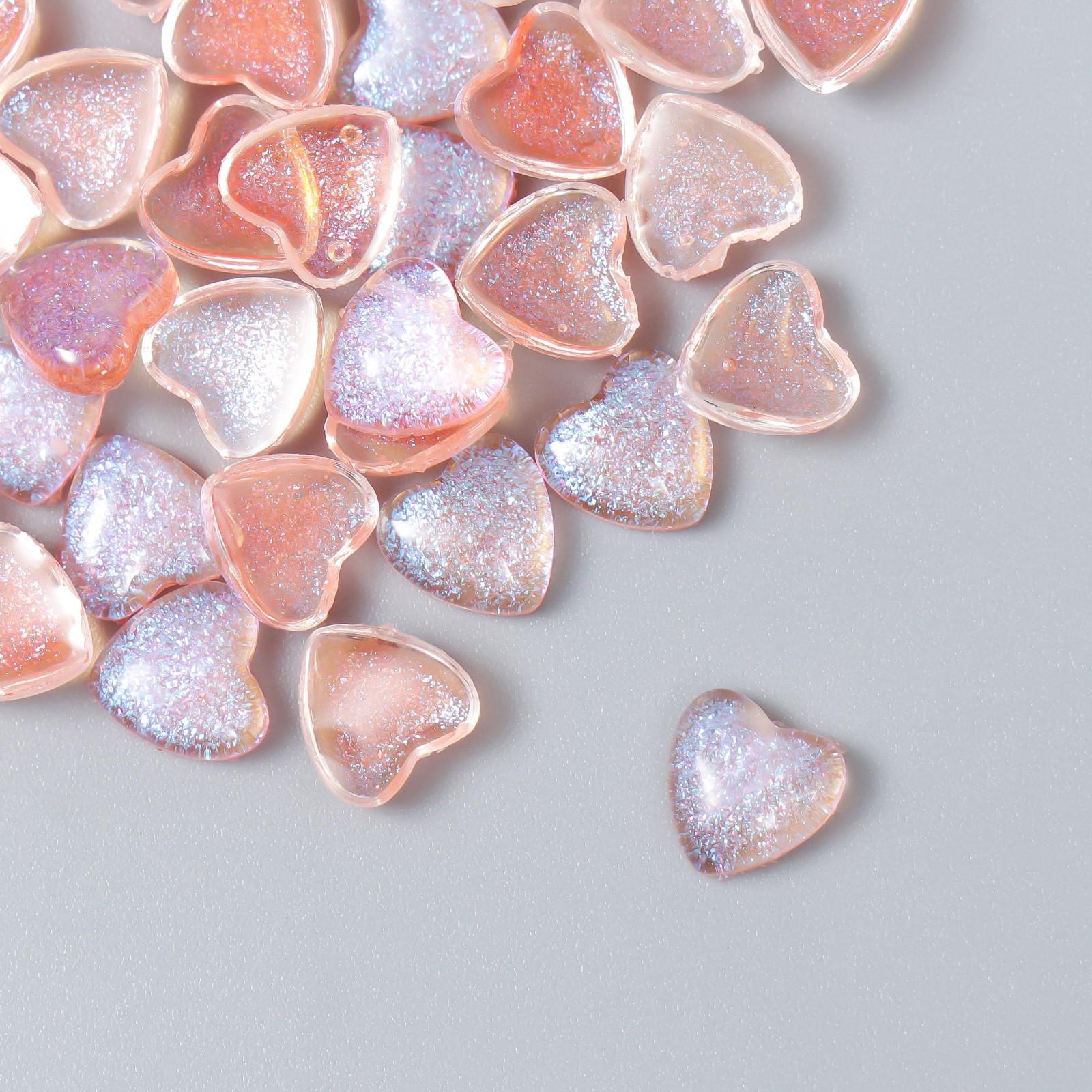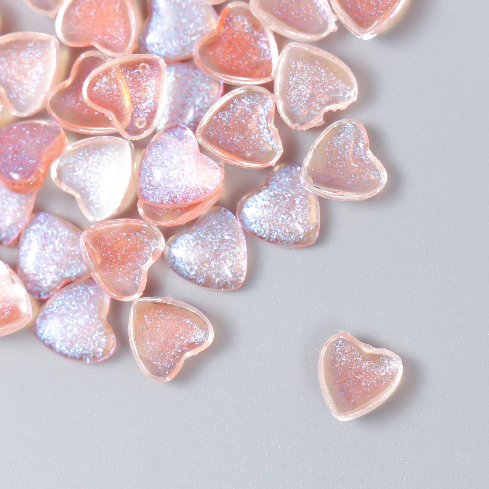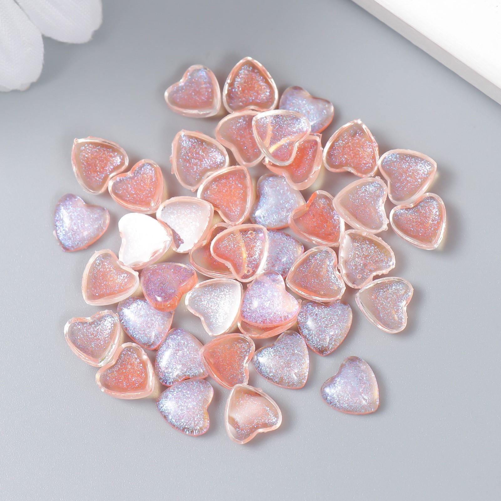 Декор для творчества пластик "Сердечки с блеском" набор 40 шт полупрозр.красн 0,8х0,8 см