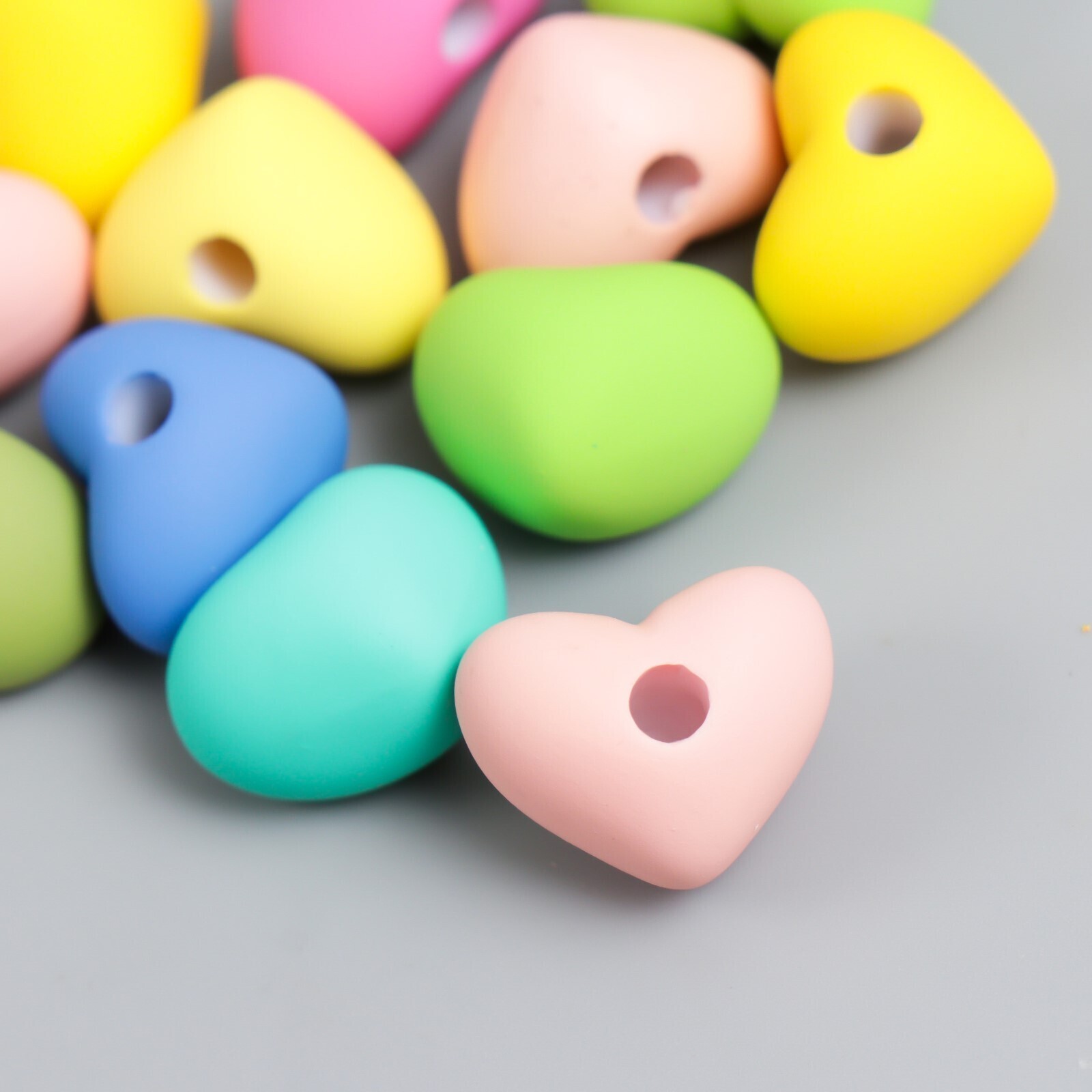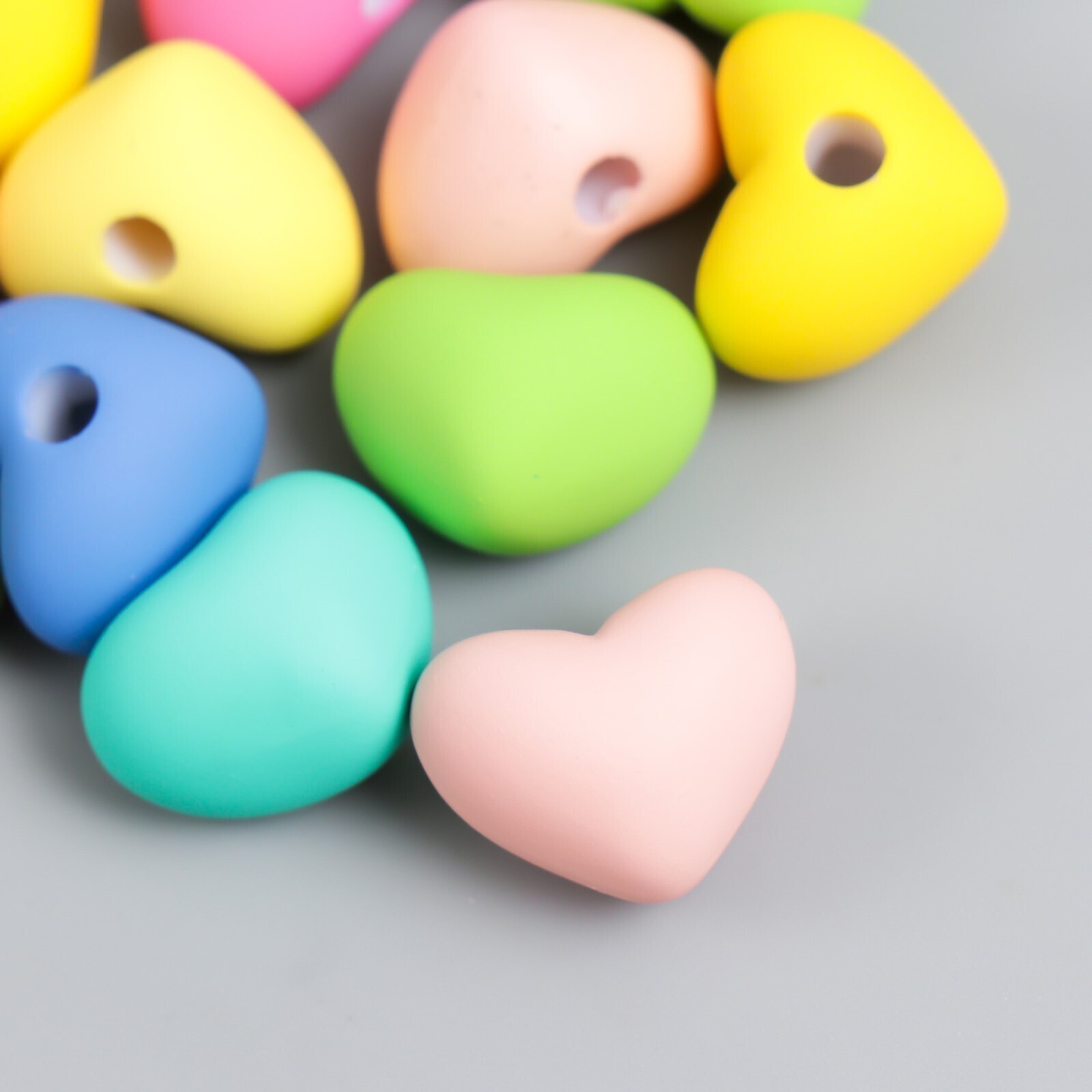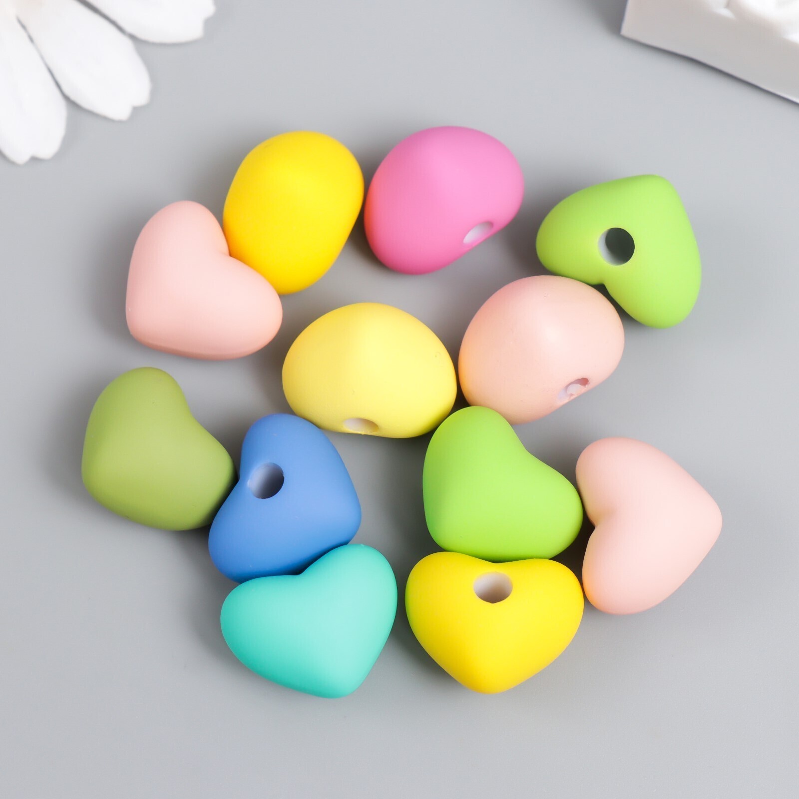 Бусина акрил с несквозным отверстием "Сердце" набор 12 шт матовые цветные 1,2х1,8х1,4 см