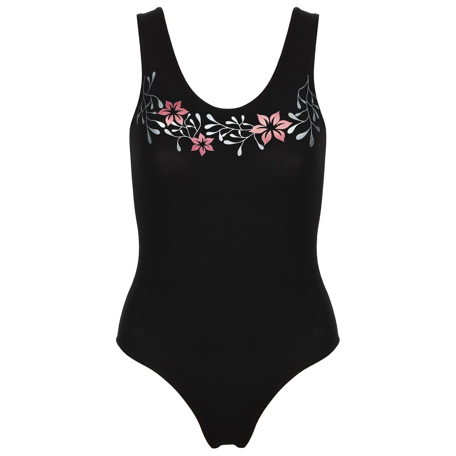 Купальник х/б маечкой, цвет чёрный, размер 42, «Цветы»
