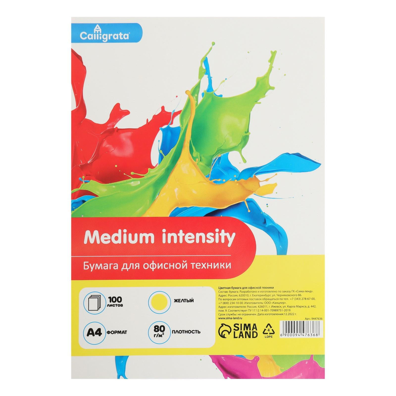 Бумага цветная А4 100л Calligrata Умеренный интенсив Желтый 80г/м2