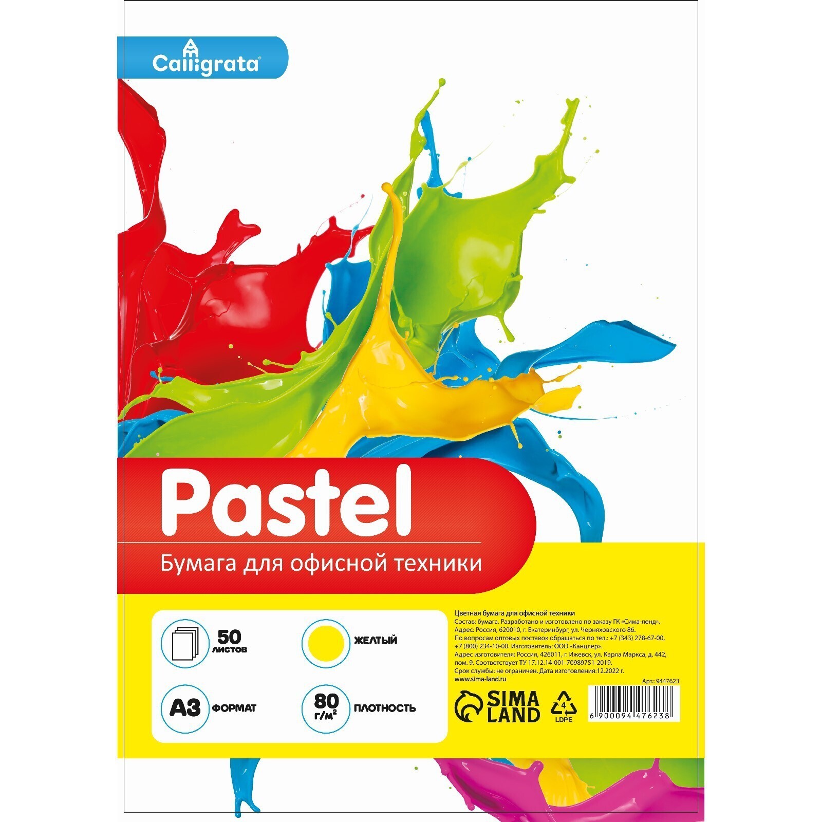 Бумага цветная А3 50л Calligrata Пастель Желтый 80г/м2