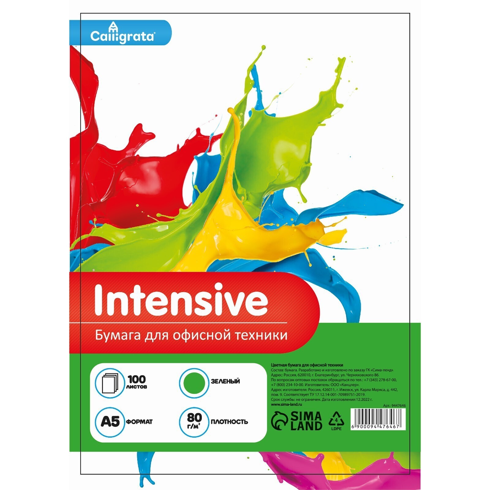 Бумага цветная А5 100л Calligrata Интенсив Зеленый 80г/м2