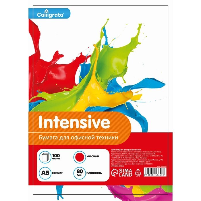 Бумага цветная А5 100л Calligrata Интенсив Красный 80г/м2
