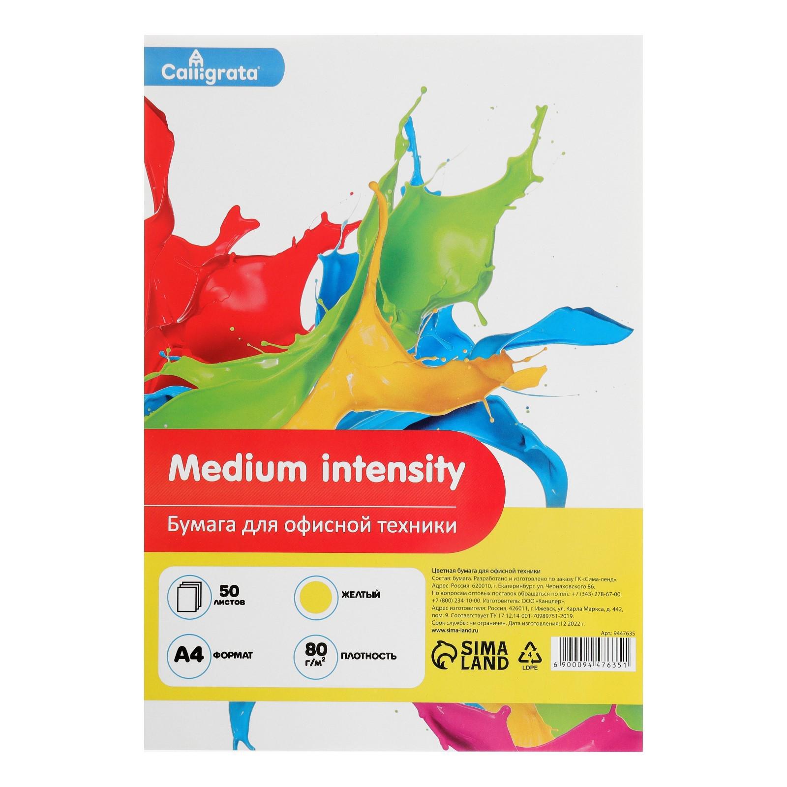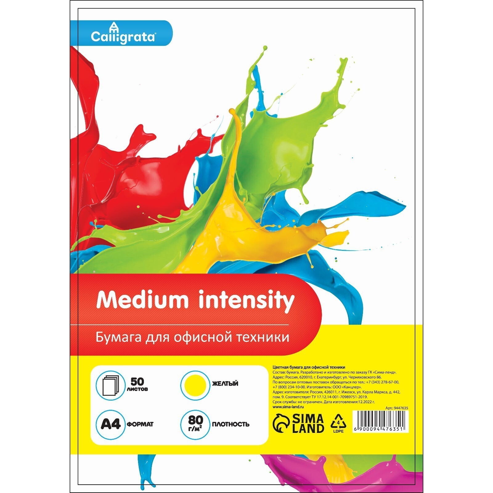 Бумага цветная А4 50л Calligrata Умеренный интенсив Желтый 80г/м2