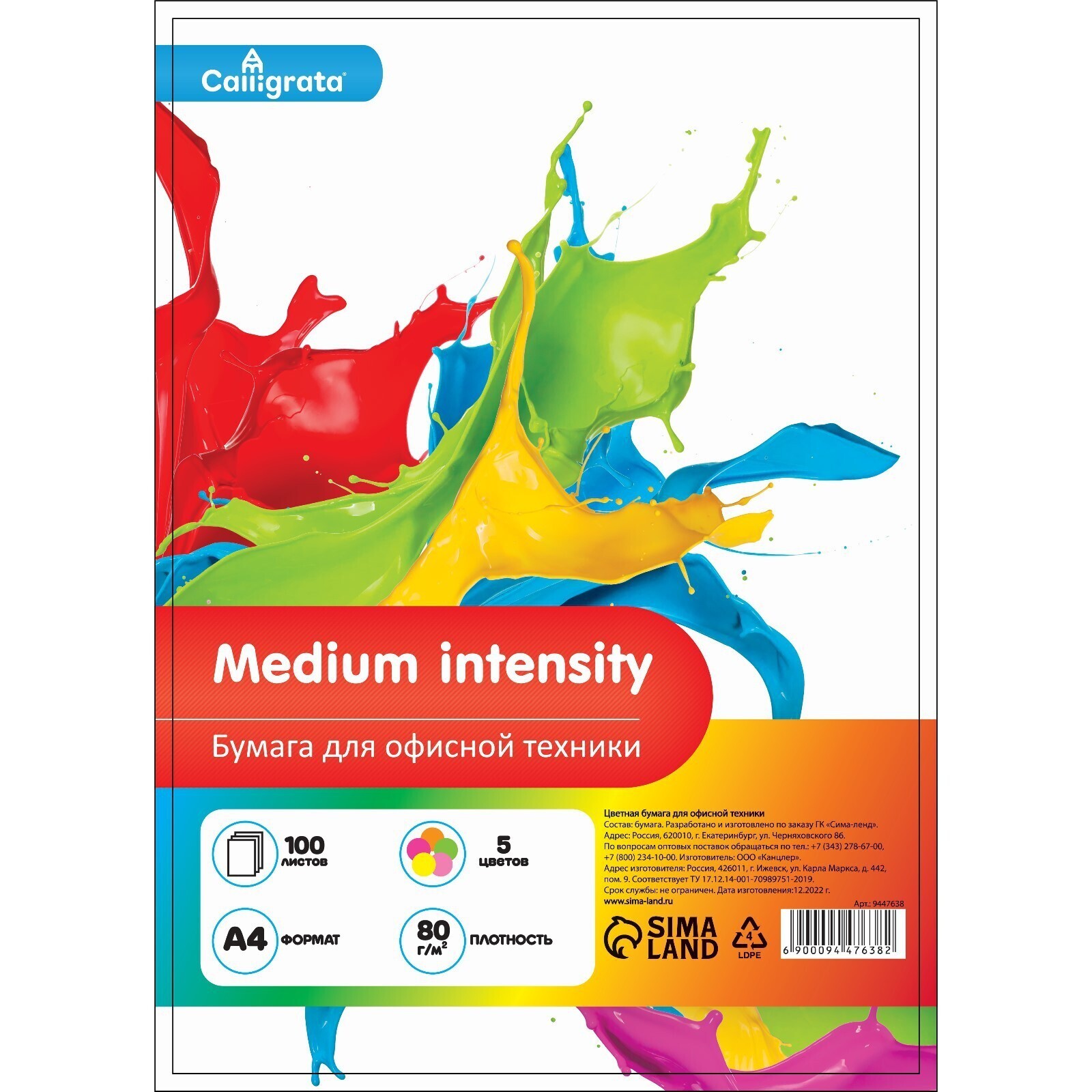 Бумага цветная А4 100л Calligrata Умеренный интенсив МИКС 5цв 80г/м2