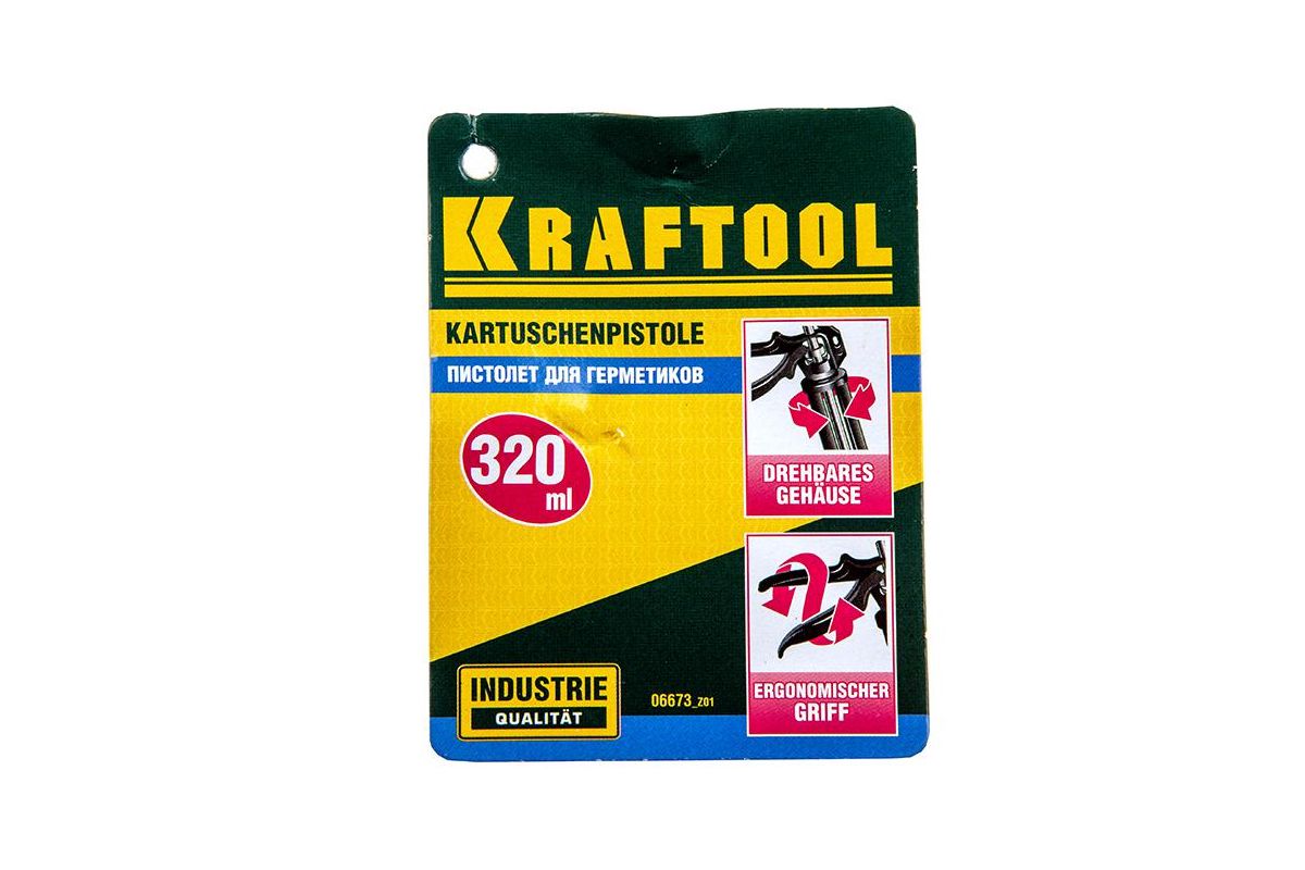 истолет KRAFTOOL ''INDUSTRIAL'' 06673_z01 предназначен для работы с баллонами герметиков объемом 320 мл.