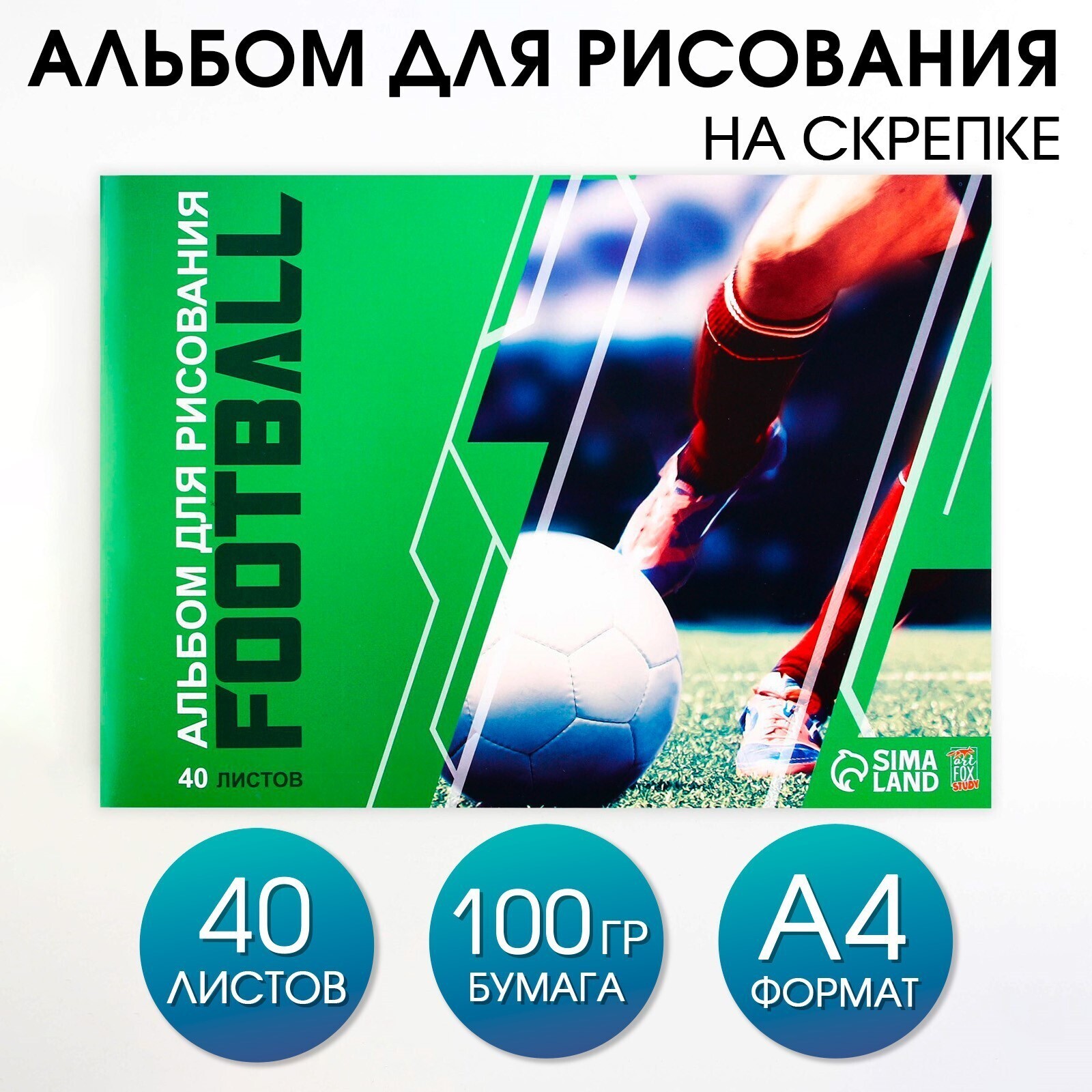 Альбом для рисования на скрепке, 40 листов "Футбол"