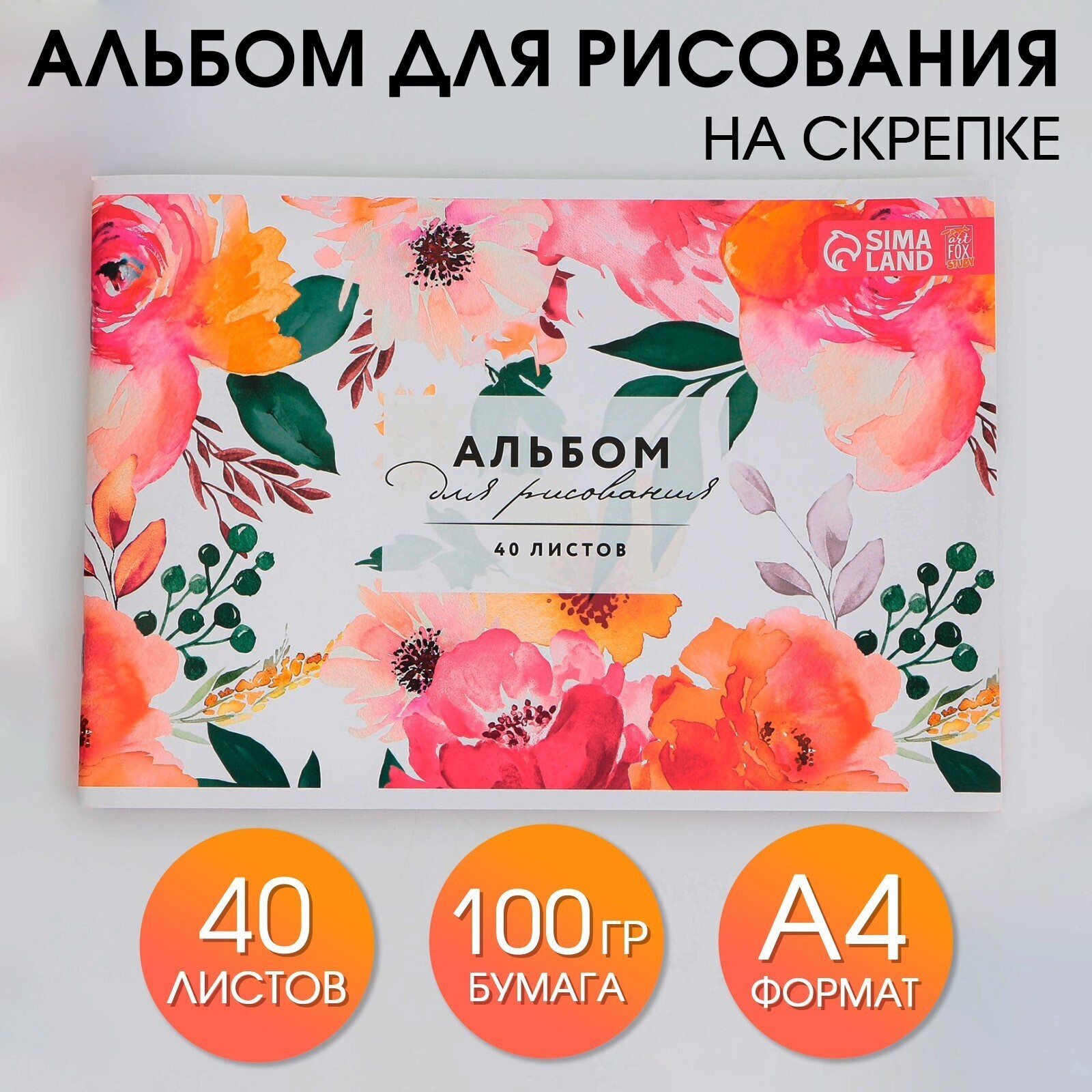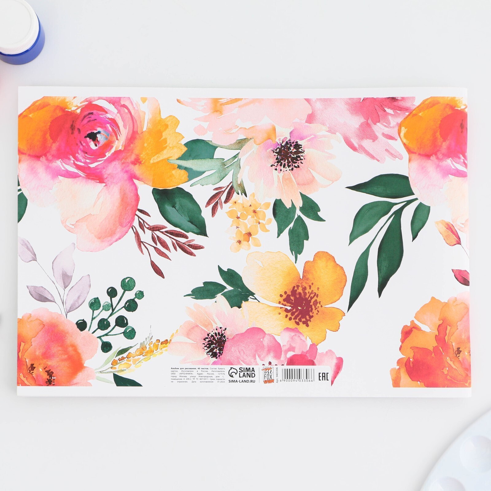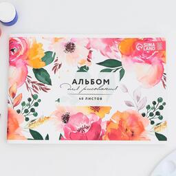 Альбом для рисования на скрепке, 40 листов "Цветы"