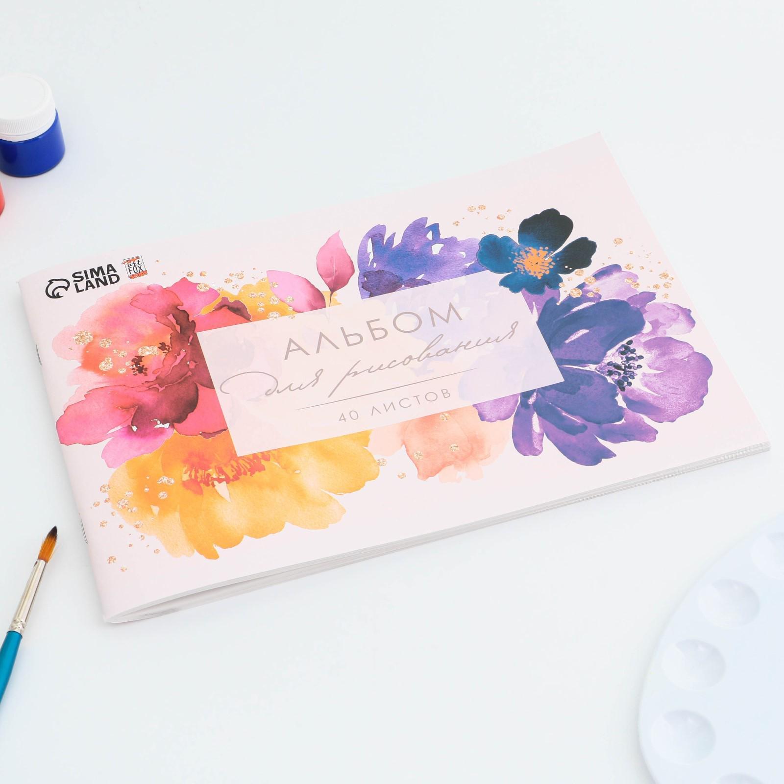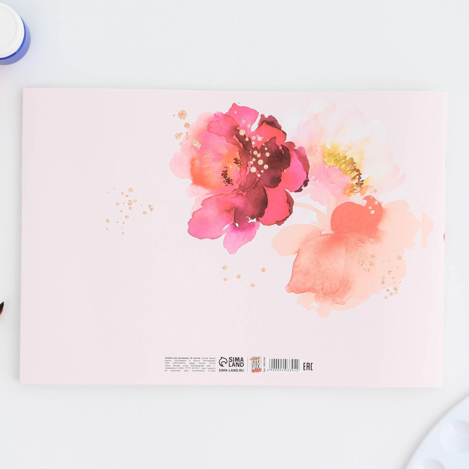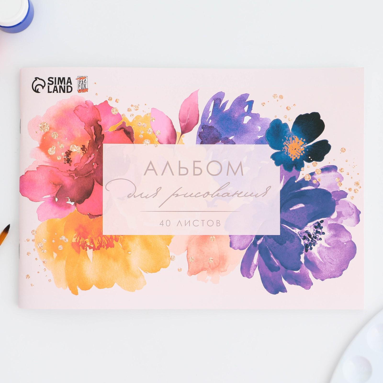 Альбом для рисования на скрепке, 40 листов "Акварельные цветы"