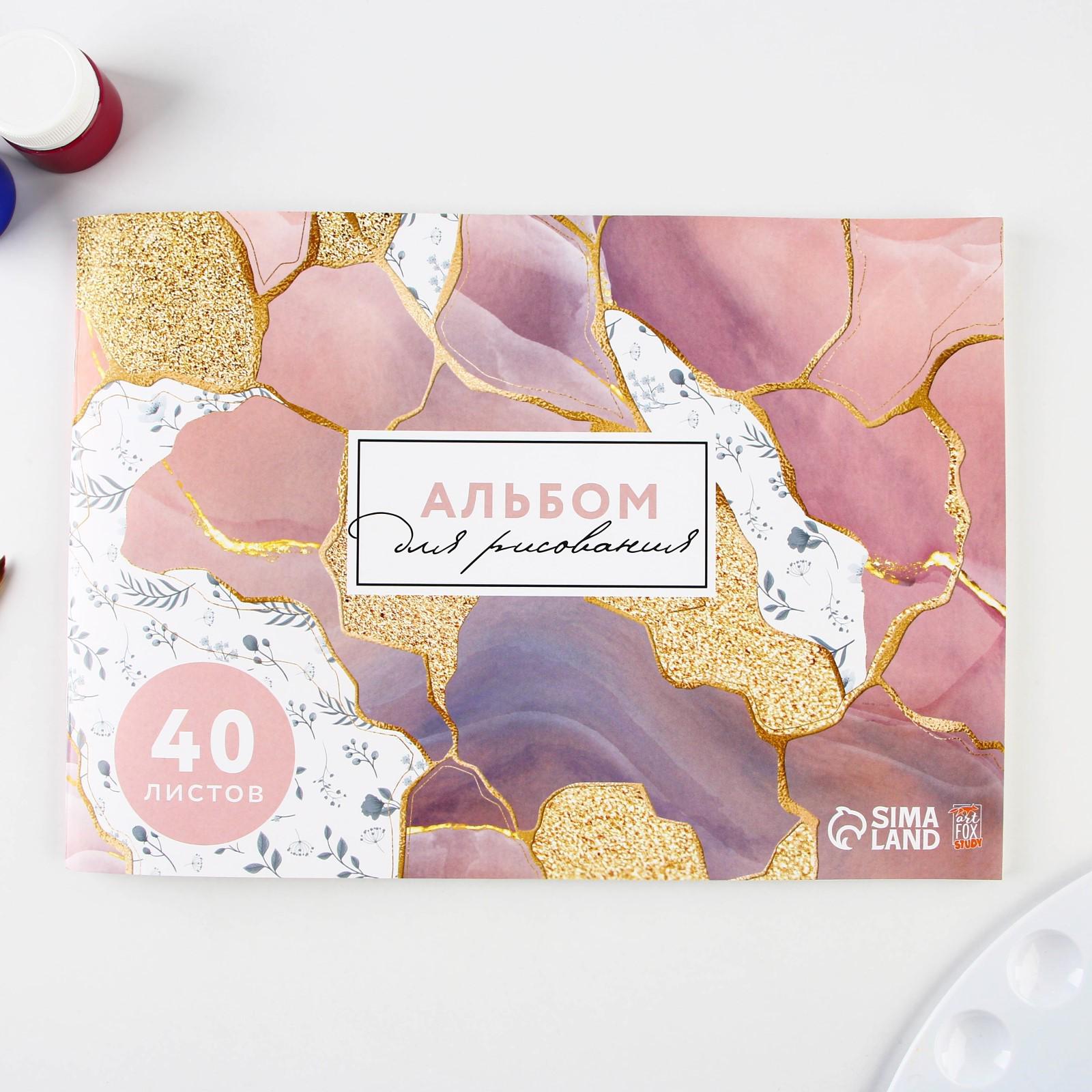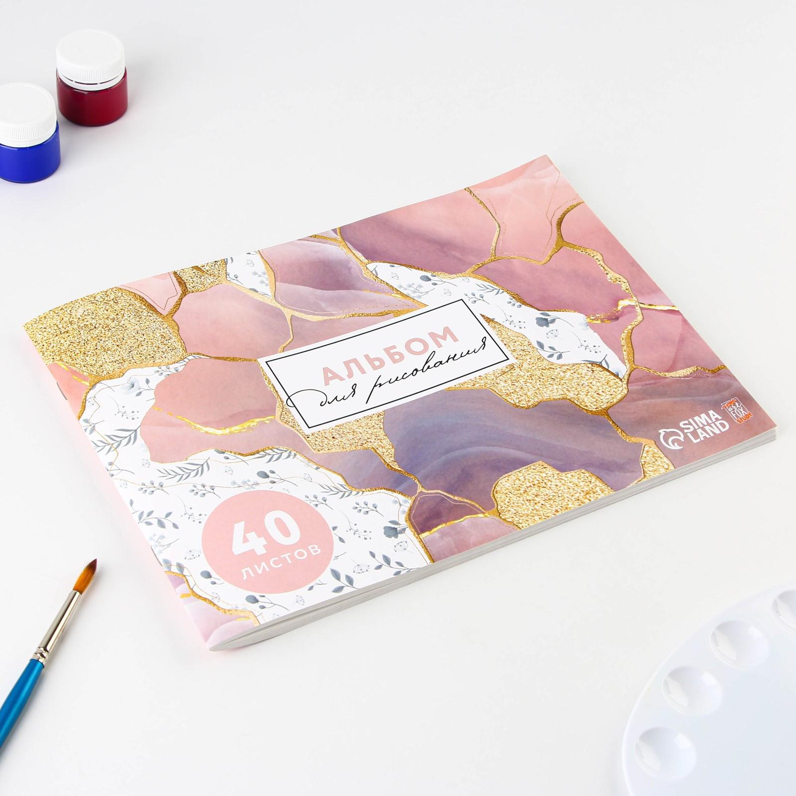 Альбом для рисования на скрепке, 40 листов "Мрамор"
