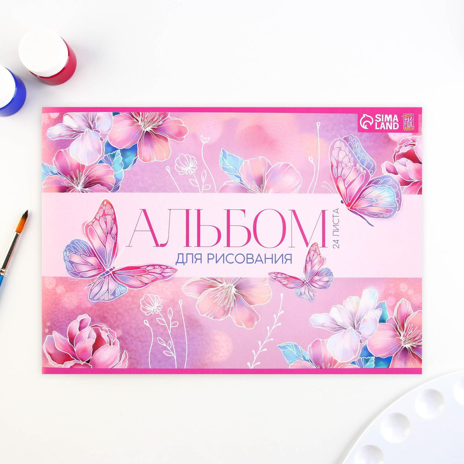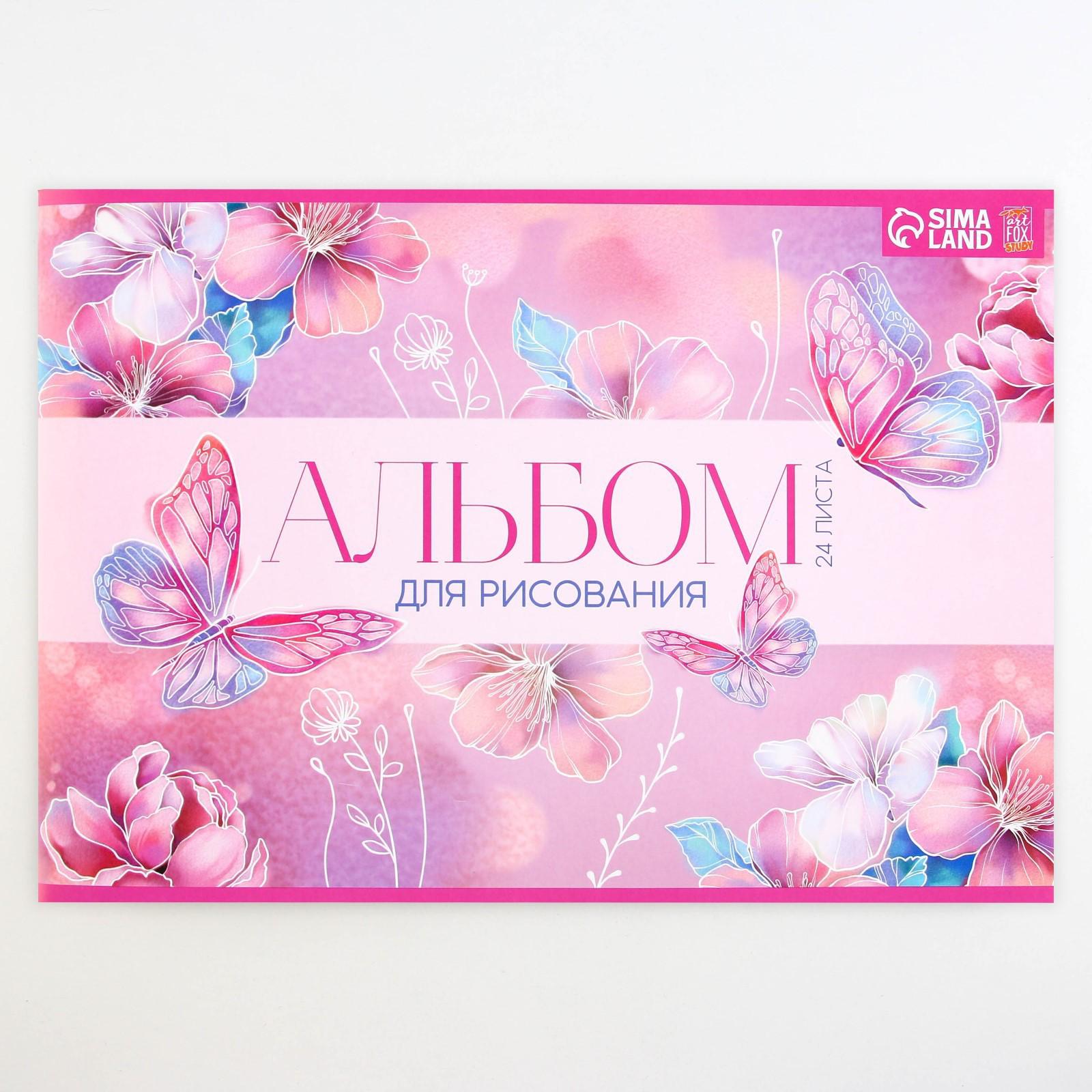 Альбом для рисования на скрепке, 24 листа "Бабуочки"