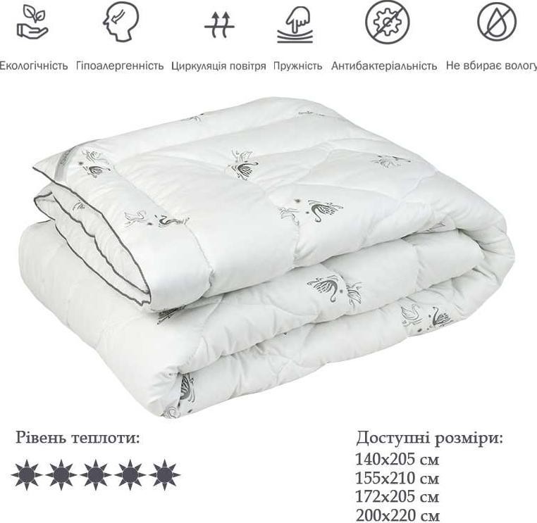 Ковдра Руно зі штучного лебединого пуху Silver Swan 200х220 см (322.52_Silver Swan)