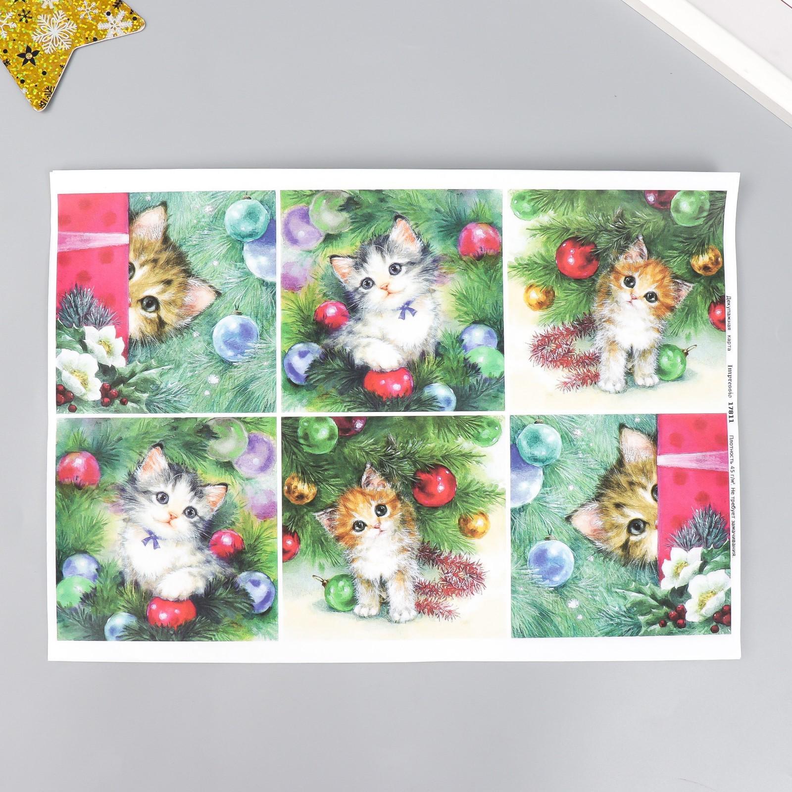 Декупажная карта "Котята в ёлках" плотность 45г/м2 формат А4