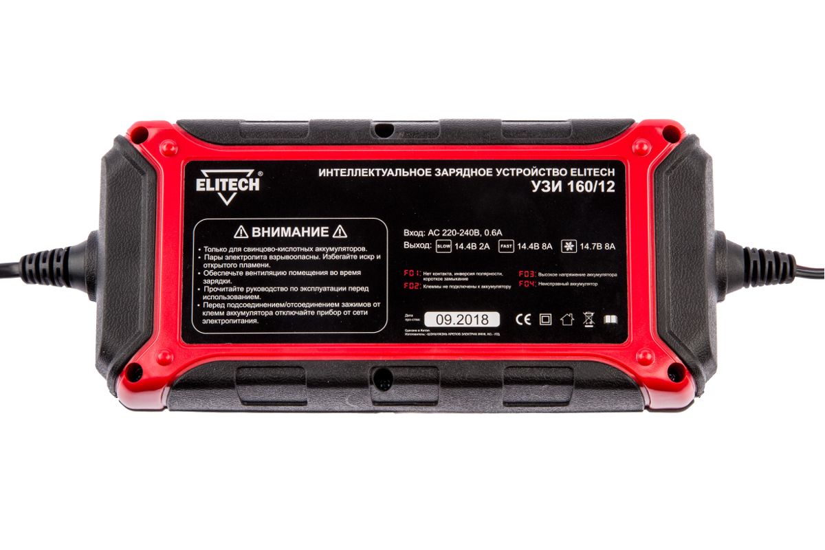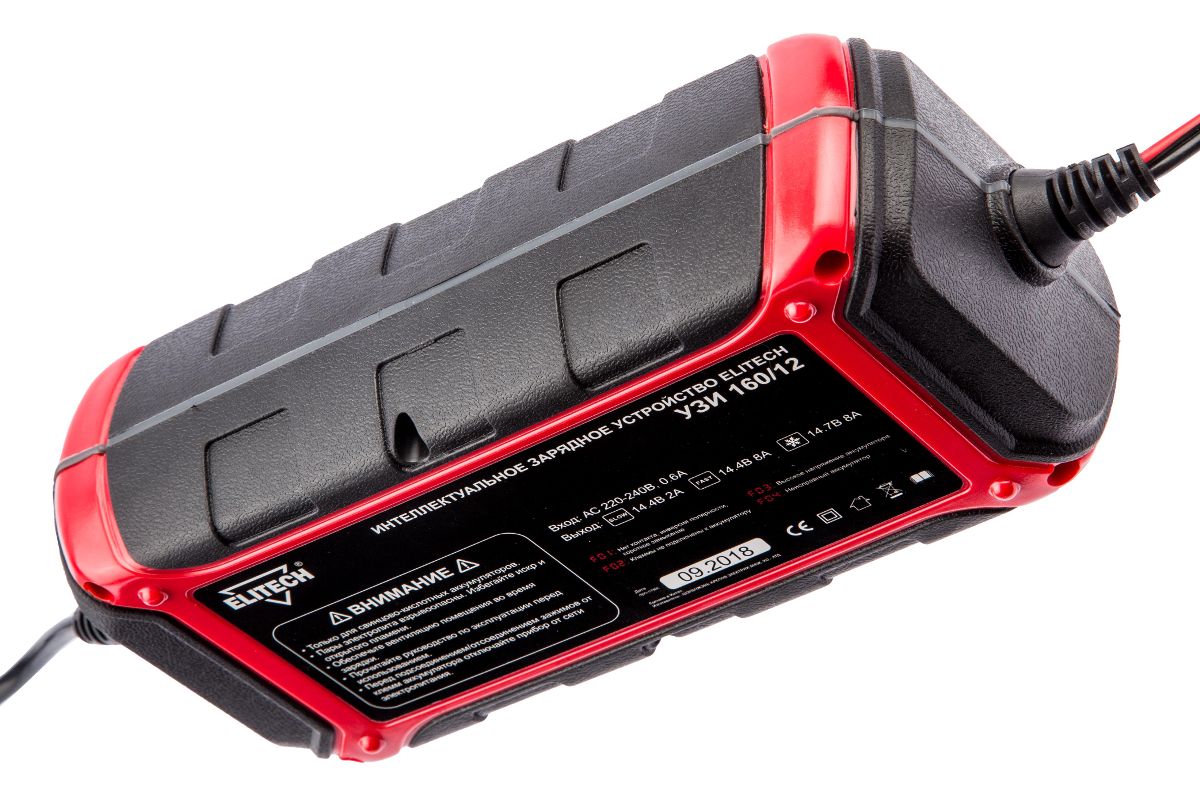 ELITECH УЗИ 160/12 – зарядное устройство для автомобильных и мотоциклетных аккумуляторов. Заряжает 12-вольтовые свинцово-кислотные батареи разных типов: AMG, GEL, WET. Поставляется в сборе с комплектом электрокабелей и с зажимами. Рекомендуемая ёмкость – от 25 до 150 Ач.