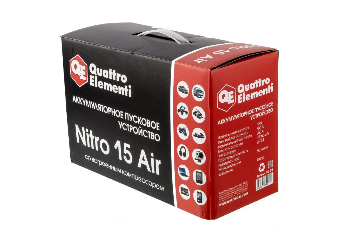 Пусковое устройство QUATTRO ELEMENTI Nitro 15 Air (790-335) 12В 15Ач 600А компрессор USB LCD-фонар
