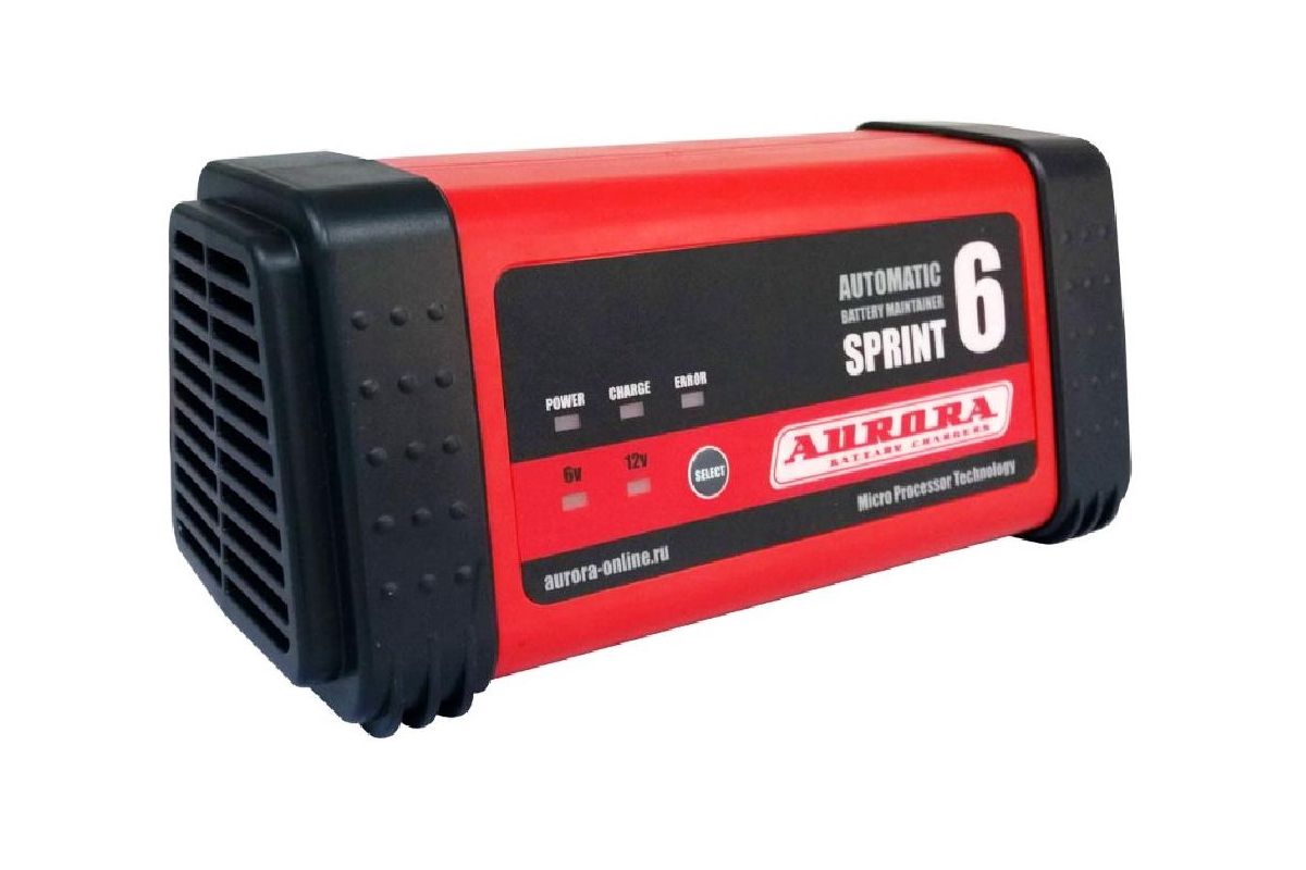 AURORA SPRINT 6 automatic — интеллектуальное зарядное устройство с микропроцессорным управлением. Подходит для мотоциклетных и автомобильных АКБ напряжением 6 или 12 В. При необходимости можно восстановить даже сильно разряженную батарею (от 1,5 В). Допускается заряжать батареи любого типа: свинцово-кислотные, гелевые, AGM. Процесс полностью автоматизирован и не требует участия пользователя. Несколько ступеней защиты исключают риск закипания электролита. Максимальный ток заряда — 6 А.