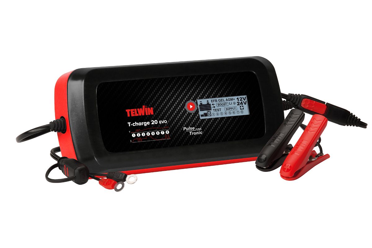 T-CHARGE 20 EVO – автоматическое электронное зарядное устройство на 12V/24V с импульсной технологией Pulse Tronic. Оборудование оснащено функцией поддержания заряда, а так же тестером для аккумуляторов, пусковой способности и генератора. Имеет ЖК-экран, на котором оперативно отображаются все параметры. Защита от перегрузки, короткого замыкания и неправильной полярности.