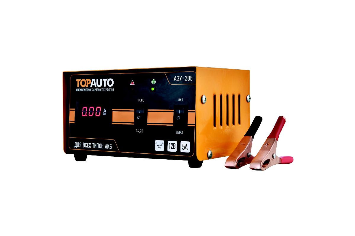Автомат. зарядное устройство ТОП АВТО АЗУ-205 (191191) (5А, для 12В-АКБ до 65 А*ч, цифр.индик.)
