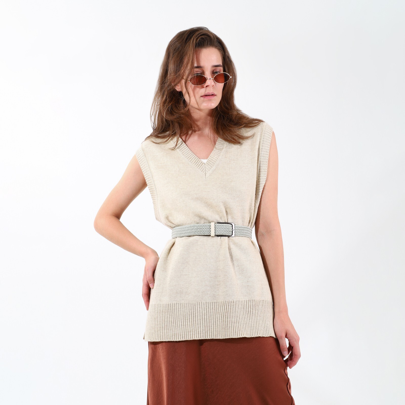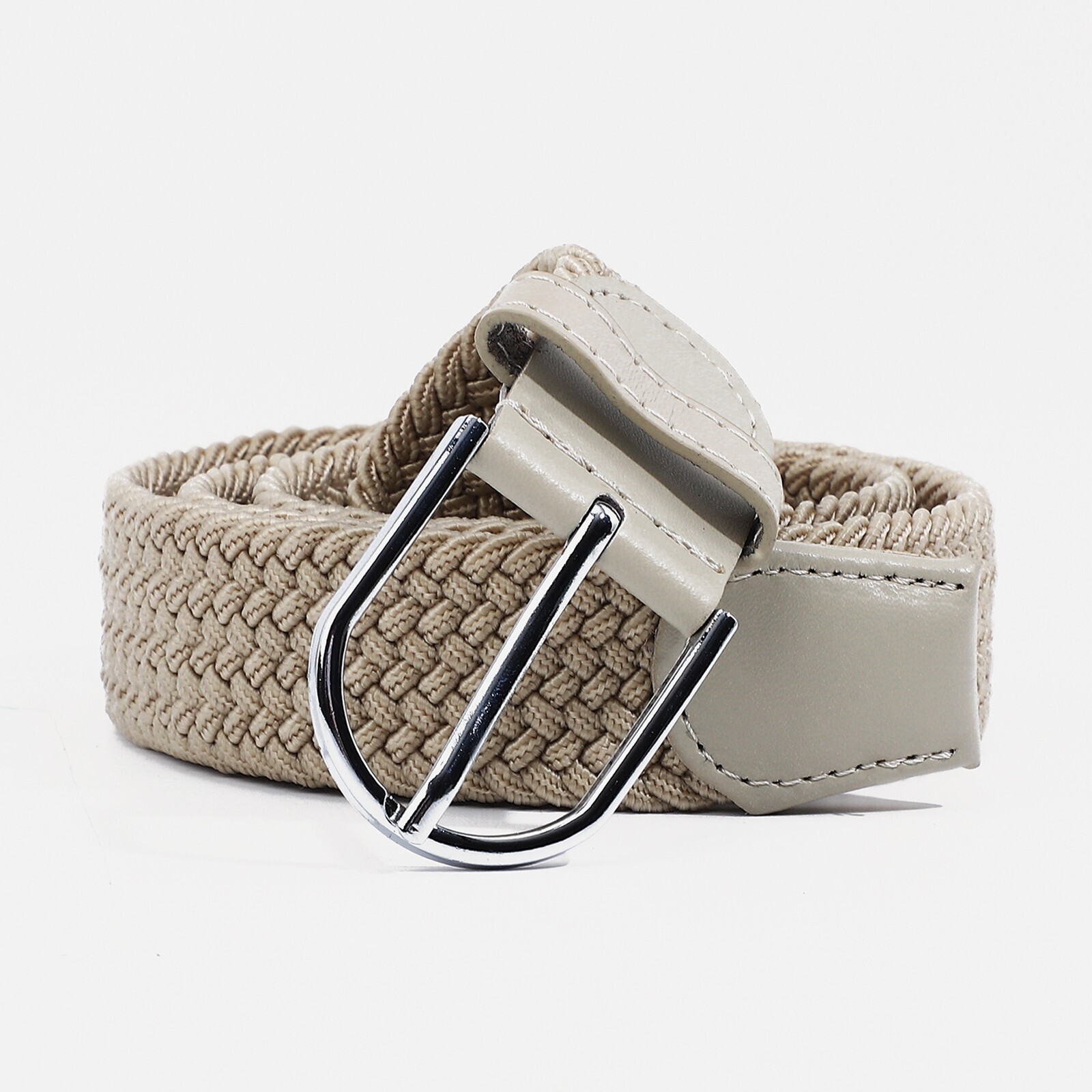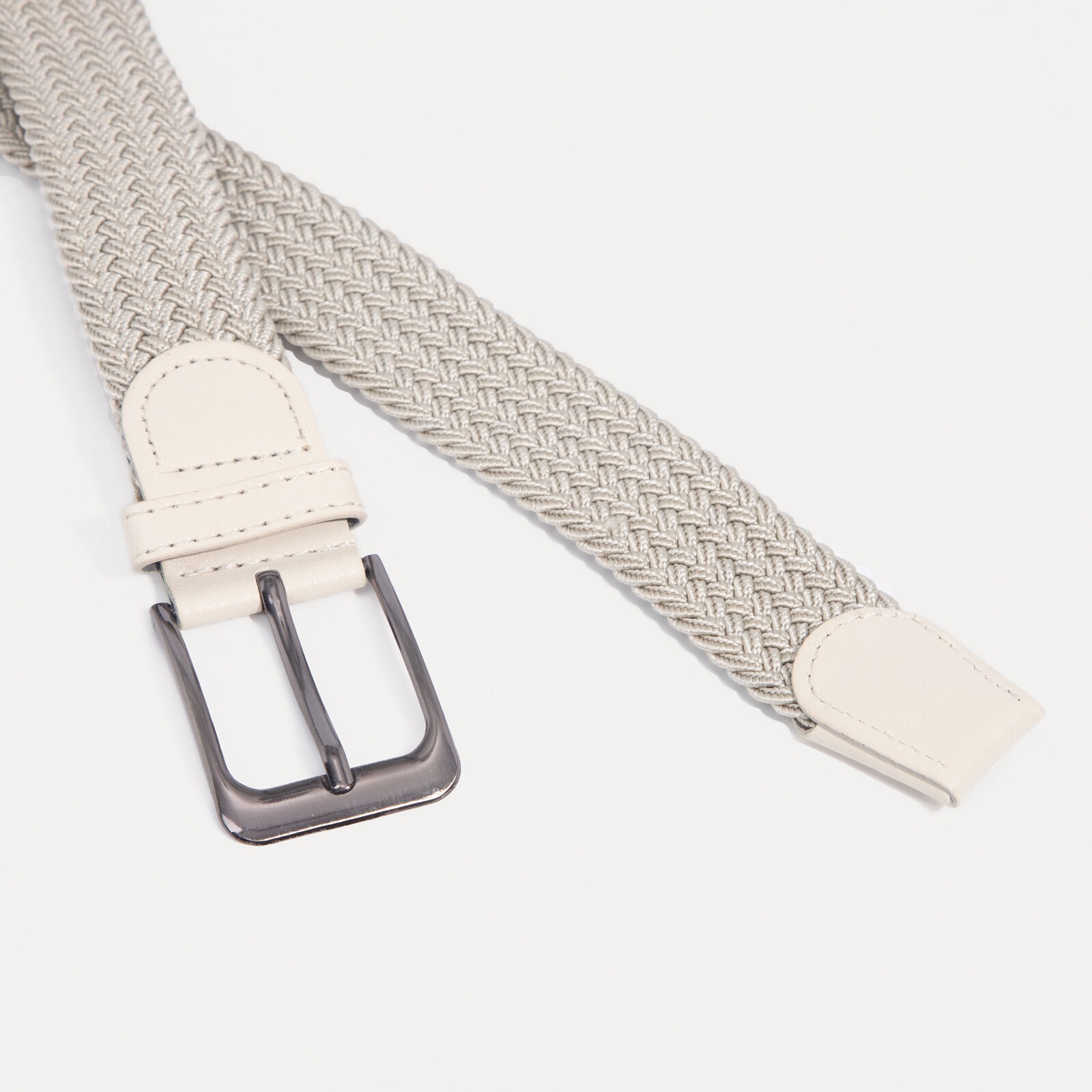 Ремень женский, ширина 3,5 см, резинка плетёнка, пряжка металл, цвет бежевый