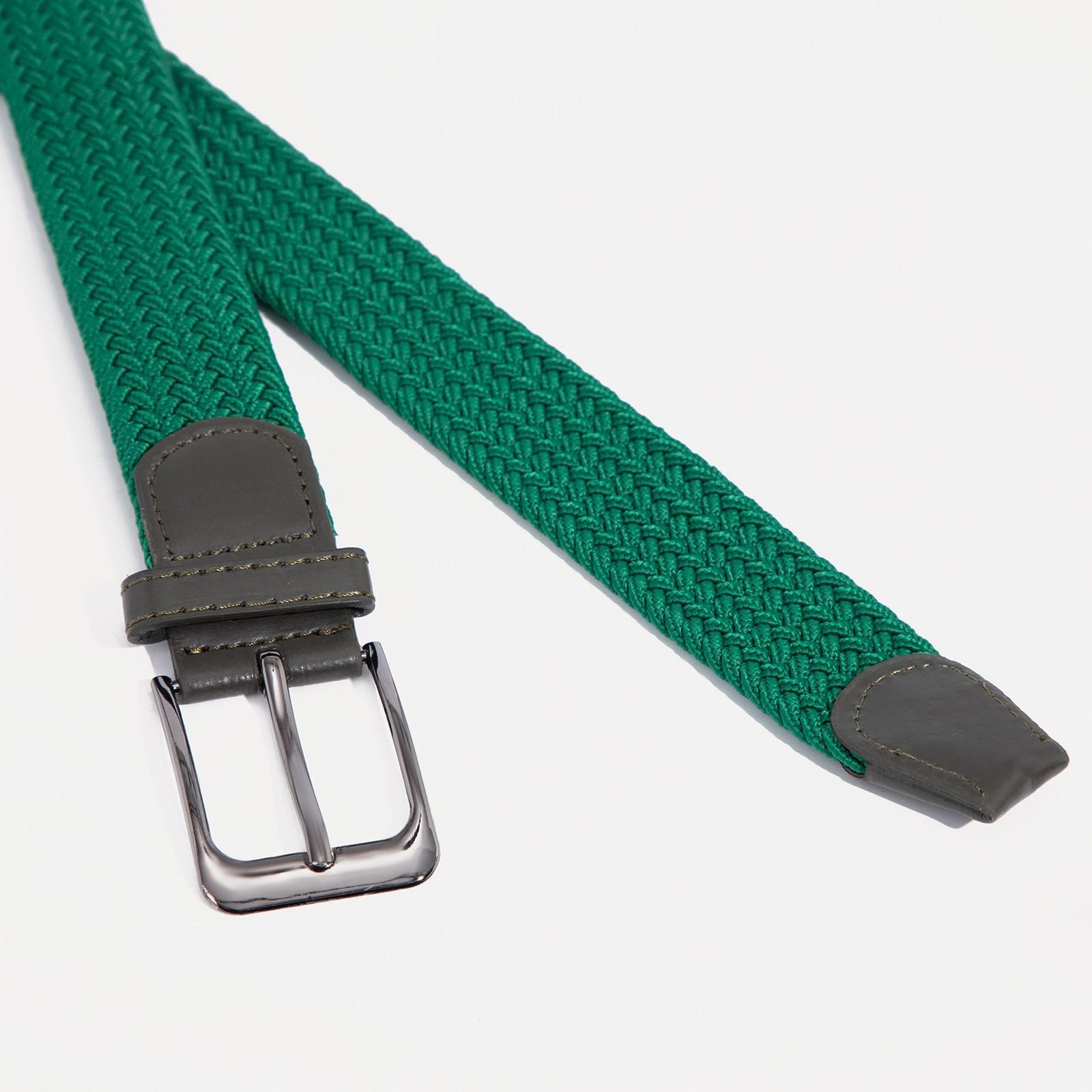Ремень женский, ширина 3,5 см, плетёнка, пряжка металл, цвет зелёный