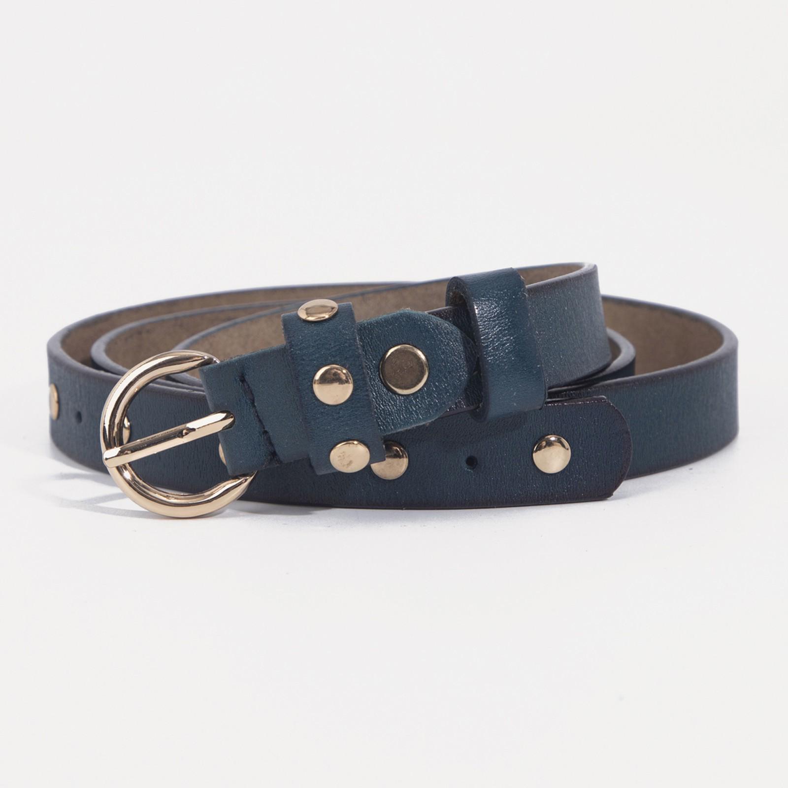 Ремень женский, гладкий, пряжка золото, ширина - 1,2 см, цвет синий