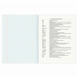 Листы соединены скобами. Линовка блока - клетка, красные поля. Обложка выполнена из мелованного картона плотностью 190 г/м2. В справочном материале для учащихся собраны основные подсказки по школьному предмету.