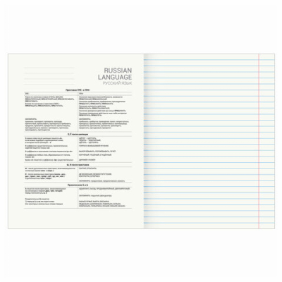 Тетрадь по русскому языку формата А5 (165х202 мм) содержит 48 листов, изготовленных из высококачественной офсетной бумаги плотностью 60 г/м2 и белизной 100%.