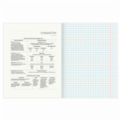 Тетрадь по химии формата А5 (165х202 мм) содержит 48 листов, изготовленных из высококачественной офсетной бумаги плотностью 60 г/м2 и белизной 100%.