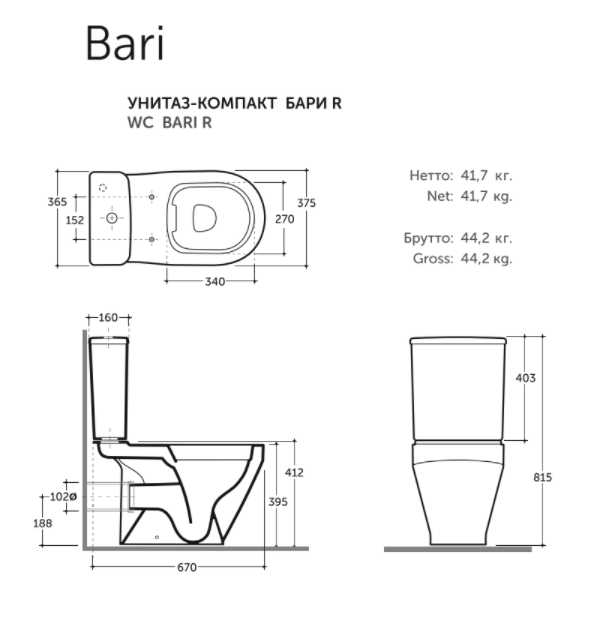 Унитаз-компакт Бари R Slim МЛ Инкоэр белый с1 , ОАО "Керамин"