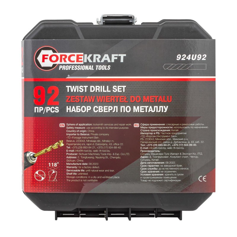 FK-924U92 Набор сверел по металлу HSS, 92пр.(1.5,2,2.5,3,3.2мм по 10шт, 3.5,4мм по 8шт, 4.5мм-5шт, 5,5.5,6,6.5мм по 4шт, 8мм-3шт, 10мм-2шт),в кейсе