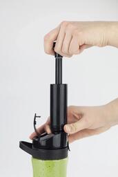Смешивание в вакууме: предотвращает окисление продуктов во время смешивания, сохраняя тем самым необходимые витамины и питательные вещества. Вакуум создается с помощью электрического вакуумного устройства или практичного ручного насоса. Блендер укомплектован основной чашей объемом 700 мл, двумя бутылочками объемом 400 и 600 мл, неопреновым чехлом для защиты от УФ излучения и сохранения температуры и измельчителем.