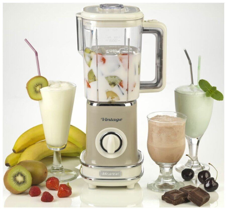 Незаменимым и стильным помощником на кухне без сомнения станет стационарный блендер Ariete Vintage 568, дополнивший коллекцию Vintage. Коктейли, крем-супы, смузи, детское питание и многое другое – ему все под силу. Вместительная чаша на полтора литра с мерными делениями позволит приготовить необходимое вам количество продукта. Поместите необходимые ингредиенты в чашу, закройте крышку. В крышке есть специальное загрузочное отверстие для добавления дополнительных ингредиентов в процессе работы прибора. Простое управление осуществляется поворотным механизмом на передней панели прибора. Прибор располагает двумя скоростями, есть также режим импульс. Удобная система хранения позволит сэкономить место, когда блендер вам не требуется.