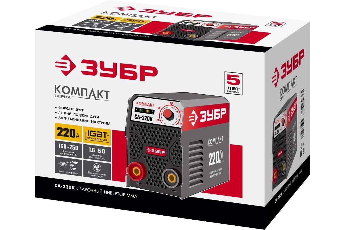 Сварочный инвертор ЗУБР СА-220К 220 А, MMA, 6600 Вт, 220 В, 1.6-5 мм