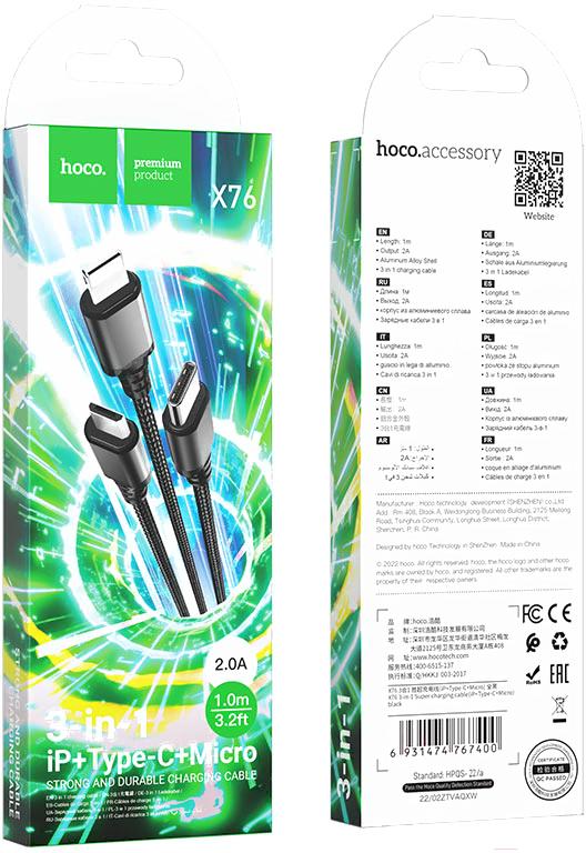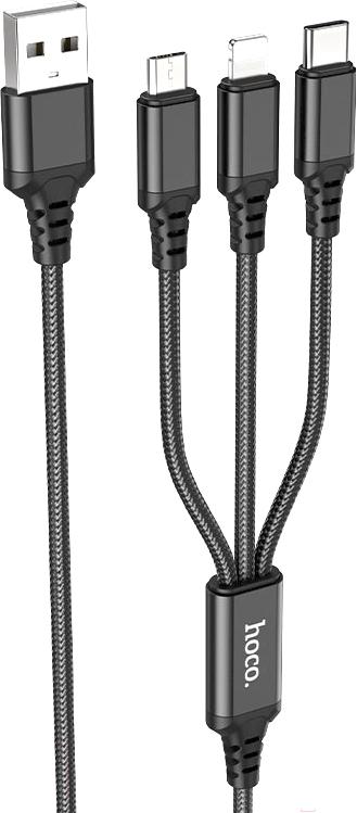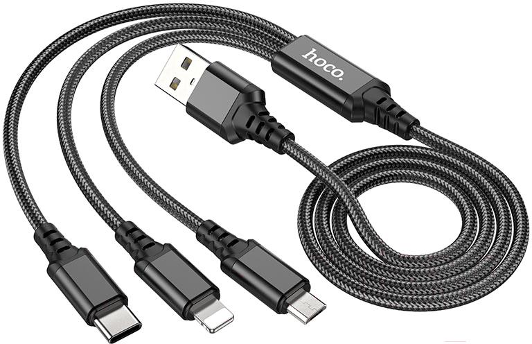 Кабель Hoco X76 3в1 Lightning+Micro+Type-С (1м, черный)