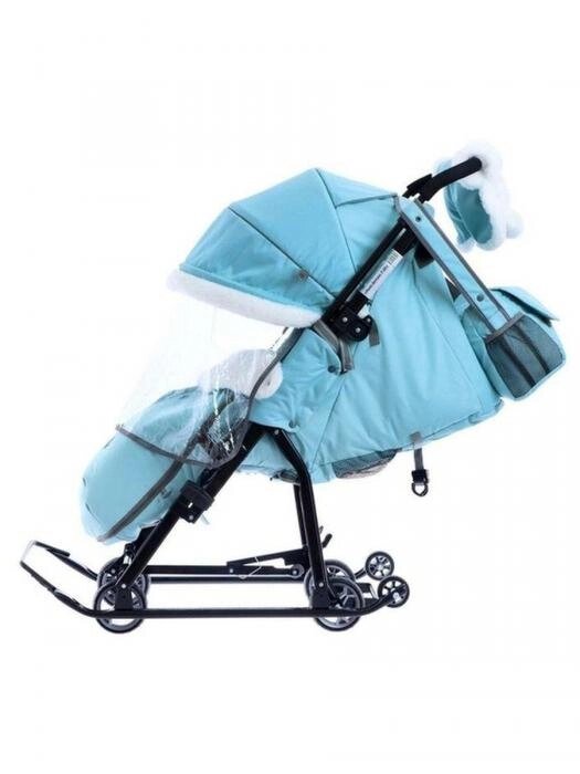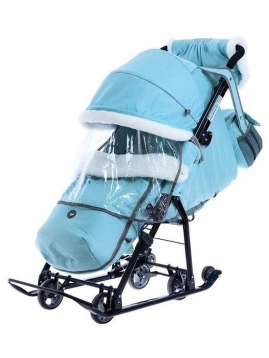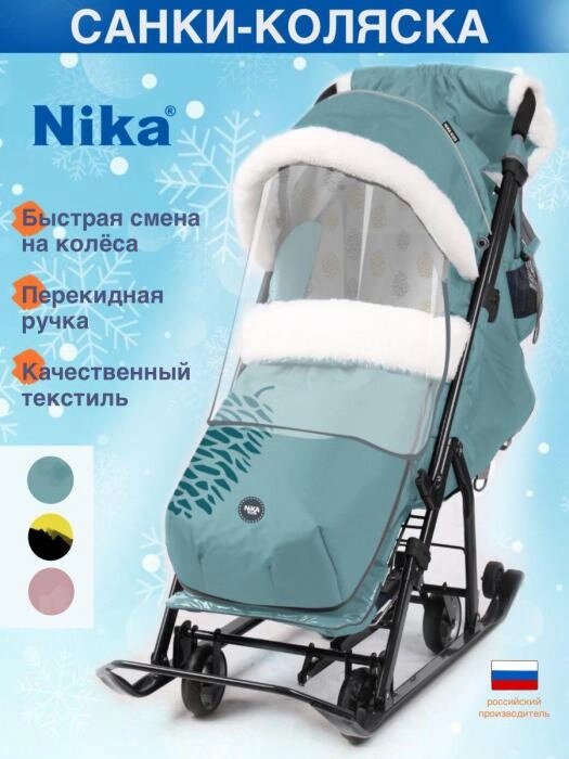 Санки коляска Ника детские зимние для малышей с колесиками и перекидной ручкой
