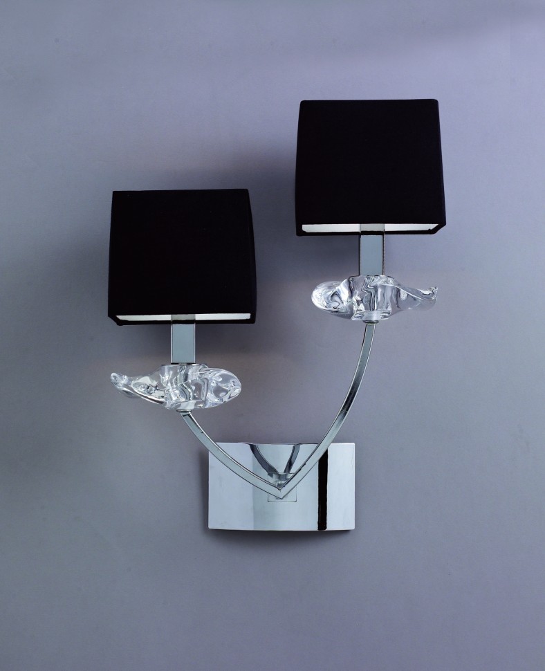 Двойной настенный светильник испанской компании MANTRA из металла цвета хром. Плафоны из ткани черного цвета. Декоративные элементы из стекла. Производство Испания