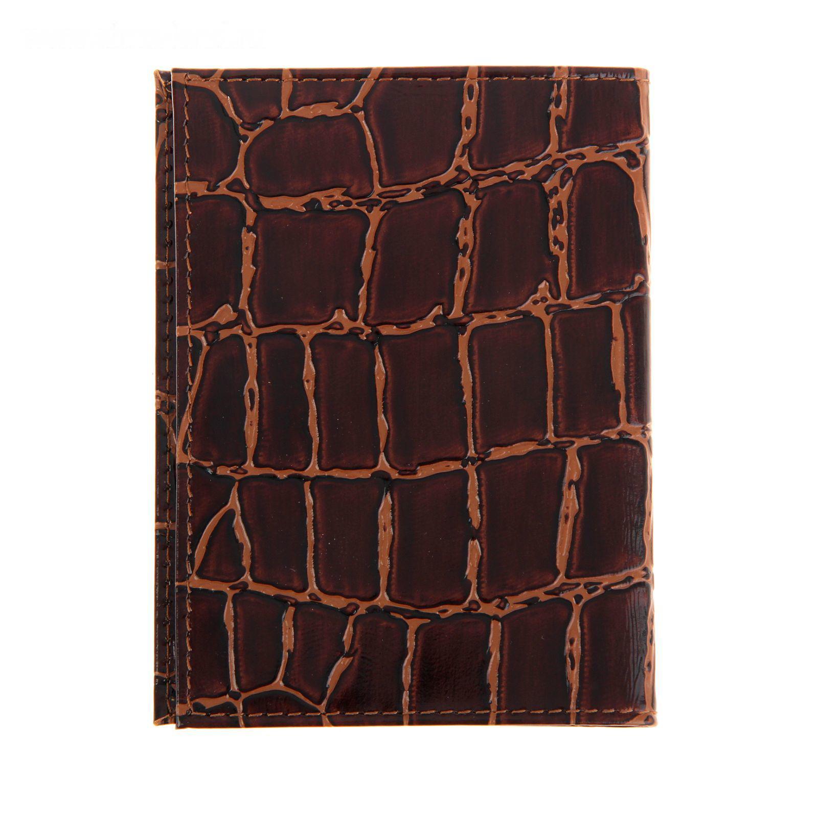 Обложка для автодокументов, цвет коричневый крокодил крупный
