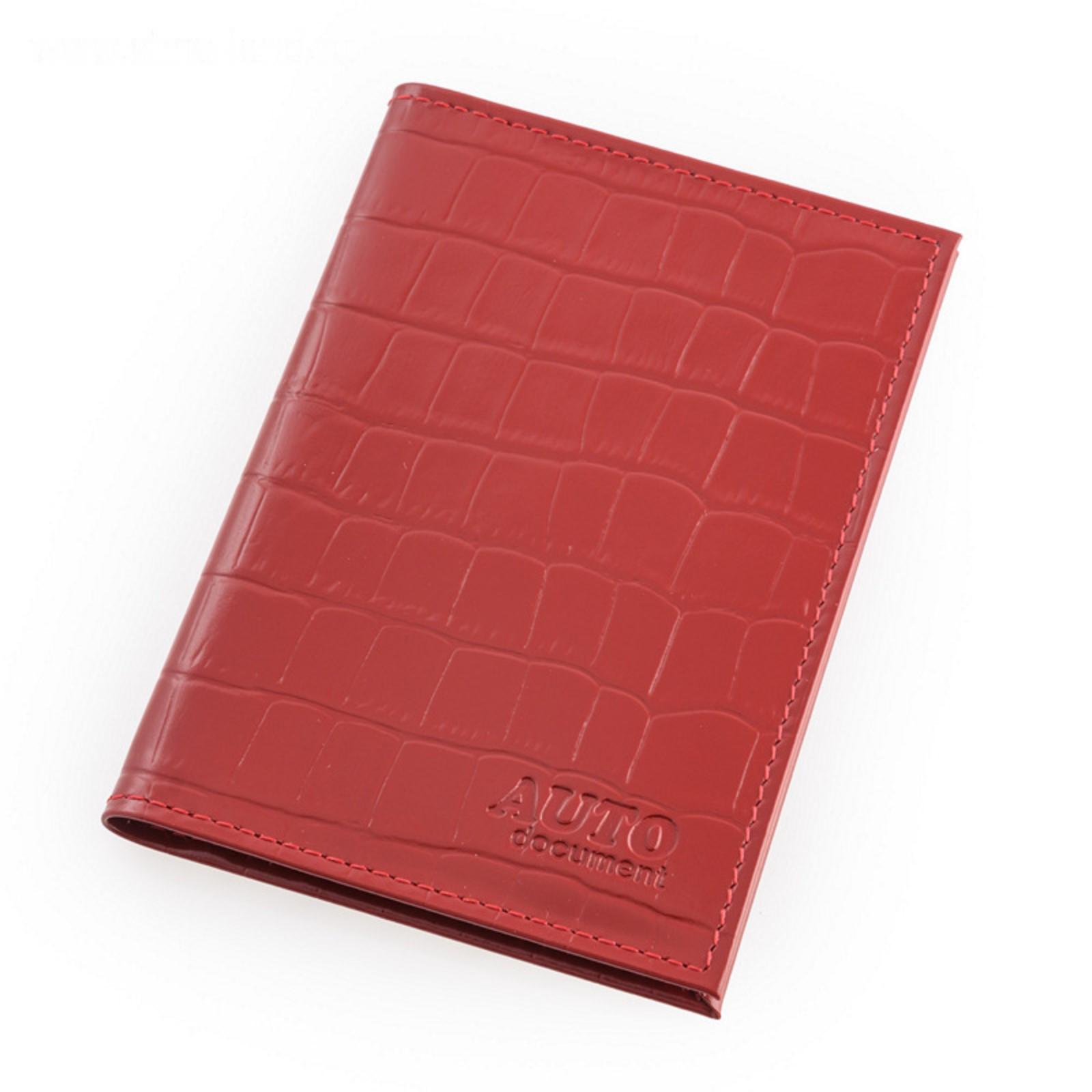 Обложка для автодокументов, без застёжки, цвет красный, крокодил