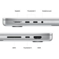 Слот для карт SDXC дає змогу переносити фото й відео. Підключайтеся до дисплеїв із портом HDMI, який тепер підтримує роздільну здатність до 8K. Підключайте аксесуари та додаткові дисплеї через три порти Thunderbolt 4. Завдяки Wi‑Fi 6E пропускна здатність збільшується вдвічі.