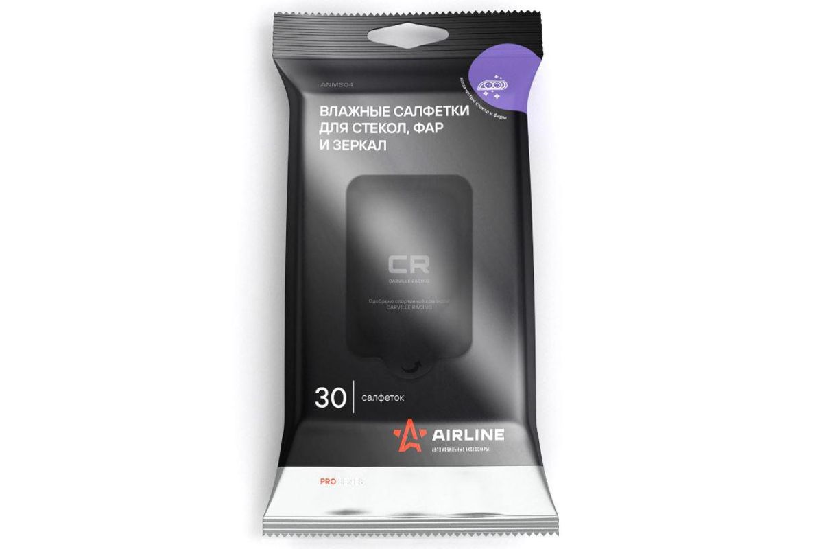 Салфетки влажные AIRLINE ANMS04 для стекол, фар и зеркал PRO (30 шт.)