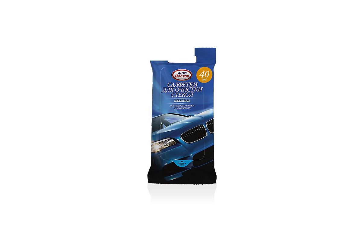 Салфетки AUTODOCTOR AD1001 для очистки стекол влажные автомобильные 40шт. Салфетки для очистки стекол, влажные, автомобильные 40шт.