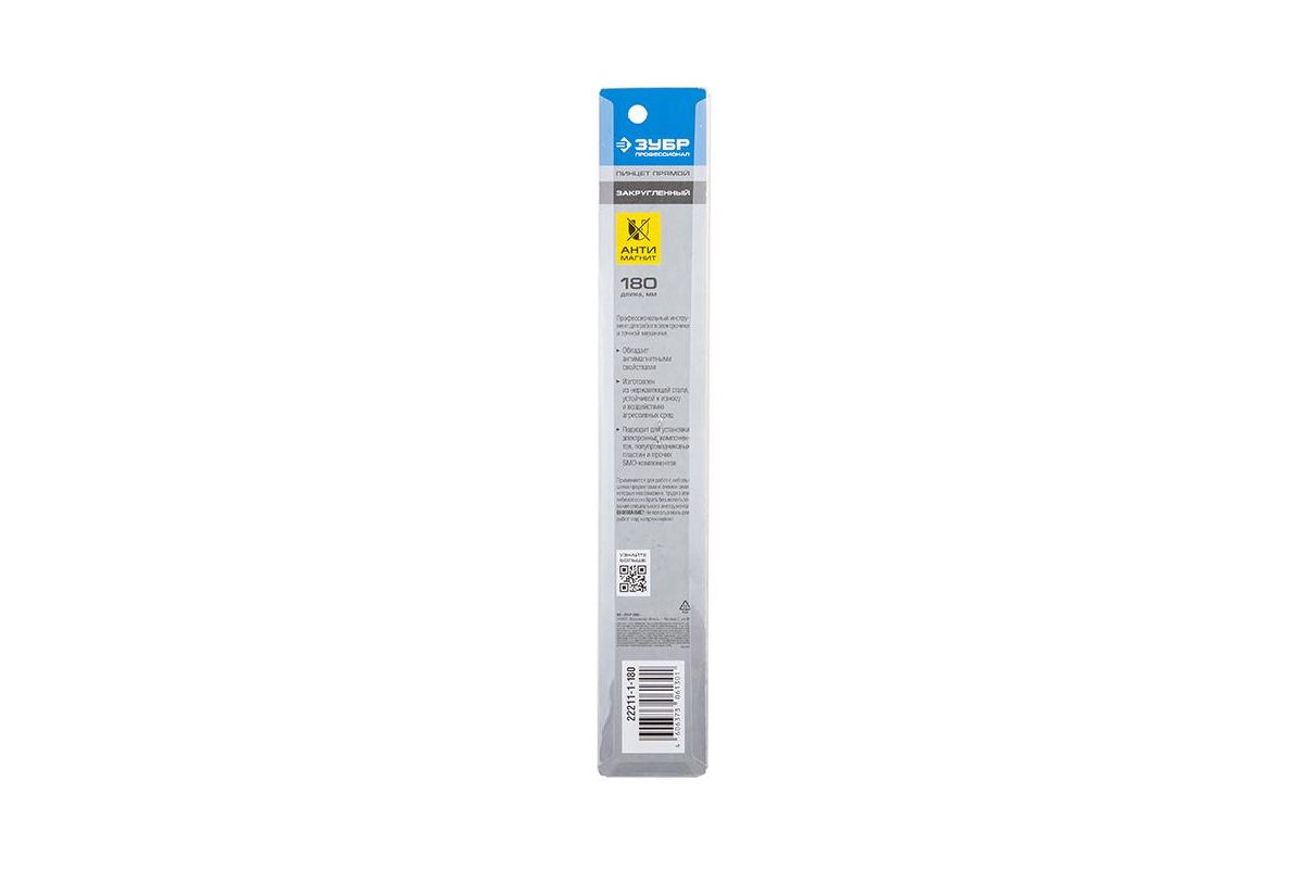 Пинцет для точной механики ЗУБР 22211-1-180, нерж.сталь антимагнит прямой закруг. губки 180мм