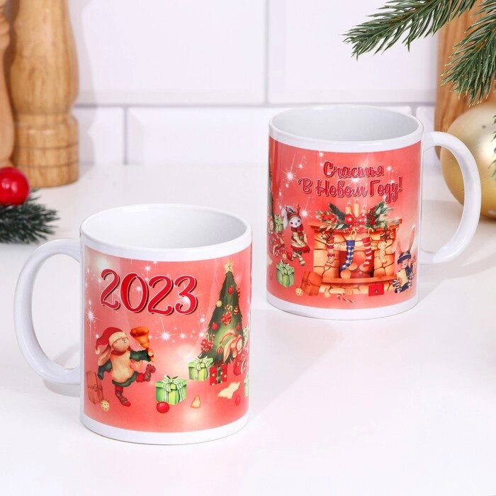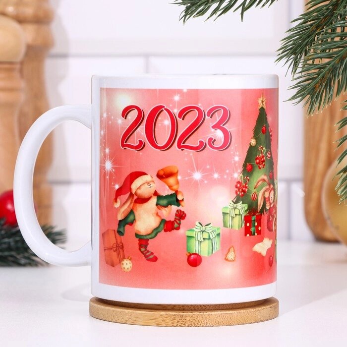 Кружка "Кролик 2023. Счастья" с нанесением, символ года, 320 мл