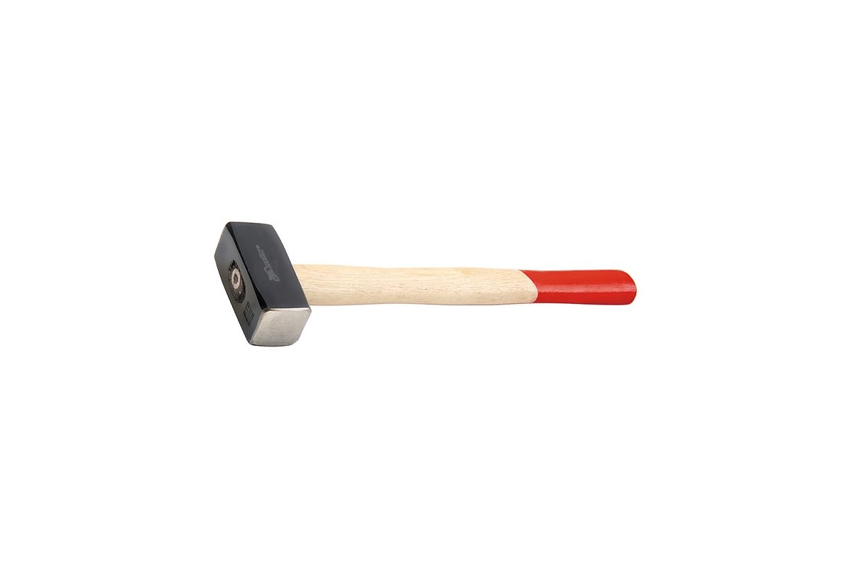 Головка кувалды кованая, изготовлена из стали 50, покрыта черным лаком. Бойку придана селективная закалка, обеспечивающая особую твердость и прочность 52 HRc. Боек слегка выпуклый и отшлифован с обеих сторон. Деревянная рукоятка удлиненная и покрыта лаком для предотвращения деформации.
