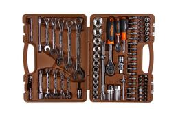 Набор OMBRA OMT82S предназначен специально для работы в автомастерской или гараже. Состоит из 82 предметов. Все инструменты изготовлены из легированной стали и устойчивы к повреждениям. Вес — 6 кг, габариты кейса — 38х28х80 см.